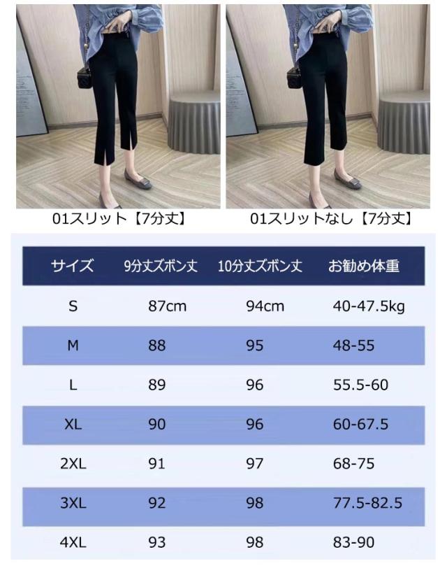 | 色 | 01スリット【10分丈】 01スリット【9分丈】 01スリットなし【10分丈】 01スリットなし【9分丈】 01スリット【7分丈】 01スリットなし【7分丈】 |