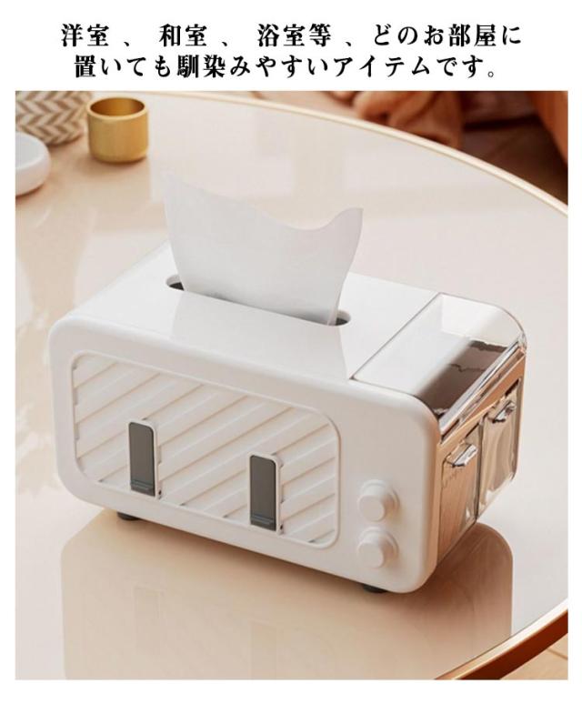 | スマホスタンドや小物入れがついたかわいいデザインのティッシュケースです。 文房具や綿棒などの日用品をきれいに収納できるアイテム。 洋室 、 和室 、 浴室等 、どのお部屋に置いても馴染みやすいアイテムです。 見た目も優雅でスタイリッシュなデザインのティッシュボックスケースでインテリアとしても映えます。 | |