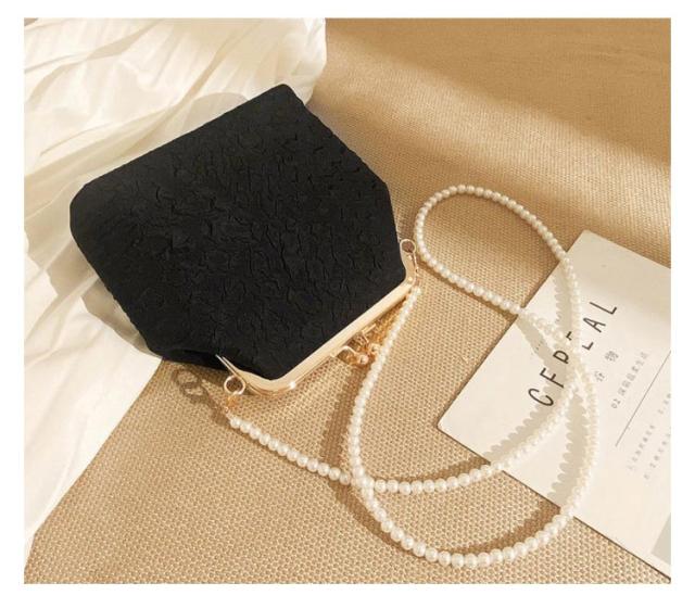 がま口バッグ クラッチバッグ 2WAY パールハンドル ハンドバッグ レース がま口 レディース エレガント メタルチェーン ショルダーバッグ パーティーバッグ パールハンドル 上品 パールチェーン 大人 かわいい 結婚式 披露宴 二次会 ブラック