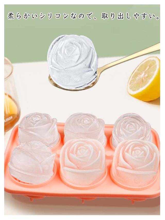 氷 立体 バラ型 2点セット アイスキューブ ふた付き 製氷皿 6個取り DIY 花 ローズ 製氷皿 シリコン型 製菓道具 漏れ防止 ジュース アイスコーヒー ビール 梅酒 ウィスキー