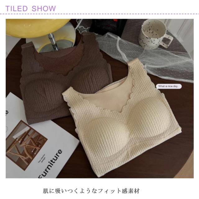 ぽかぽか レディース あったかい 裏起毛 ヒートインナー 切り替えレース タンクトップ カップ付き 取り外し可 カップ付きタンクトップ ブラトップ 防寒 冷え対策 あったかインナー 暖かい レース