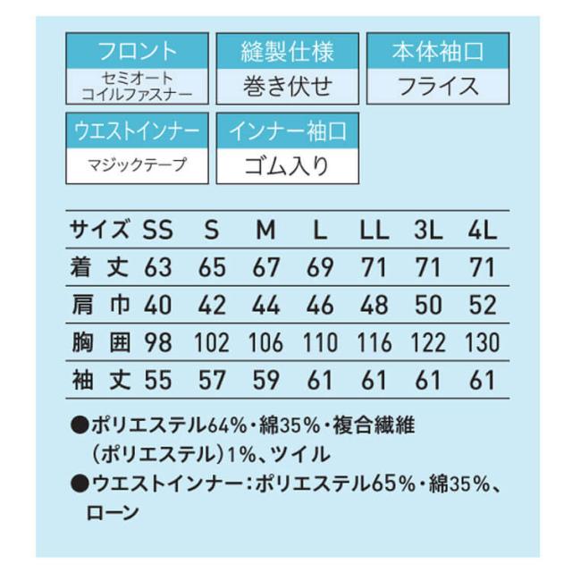 食品工場白衣 長袖ジャンパー FH2711 男女兼用 サーヴォ SERVO フードファクトリー 常温作業向け 制服 ユニフォーム
