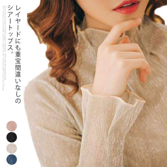 【送料無料】シアートップス ハイネック ボートネック シースルー レディース 長袖 メロウ インナー 透け感 光沢感 レイヤード コーデ 重ね着 薄手 きれいめ おしゃれ セクシー 韓国 春夏秋冬 ベージュ ブラック ネイビー 人気 トレンド 無地 ストレッチ