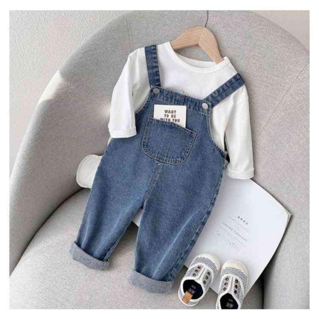 【送料無料】オーバーオール キッズ 子供服 ストレッチ入り デニムオーバーオール 女の子 男の子 ベビー 赤ちゃん サロペット コーデ レイヤード ボトムス コットン 綿 春 秋 冬 ポケット シンプル パンツ 80cm 90cm 100cm 110cm
