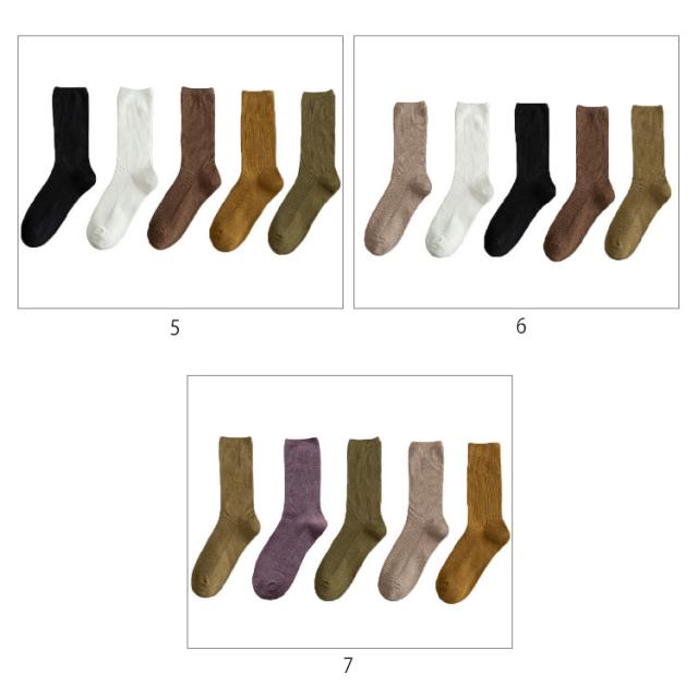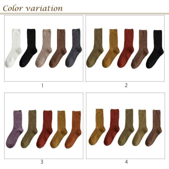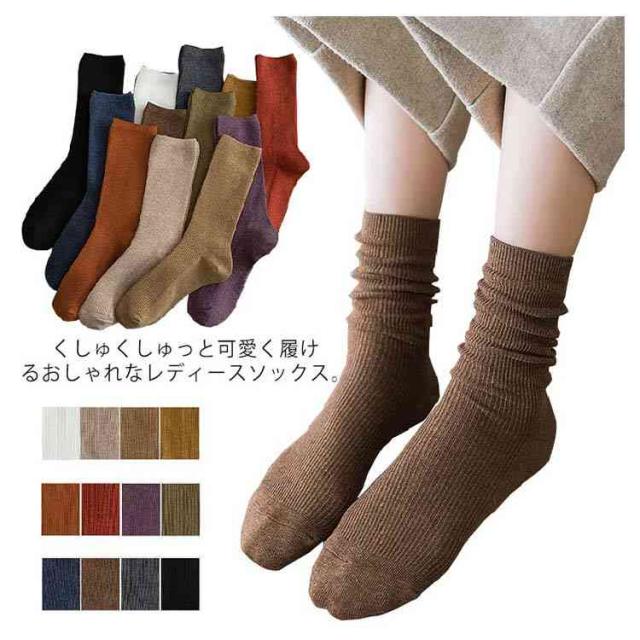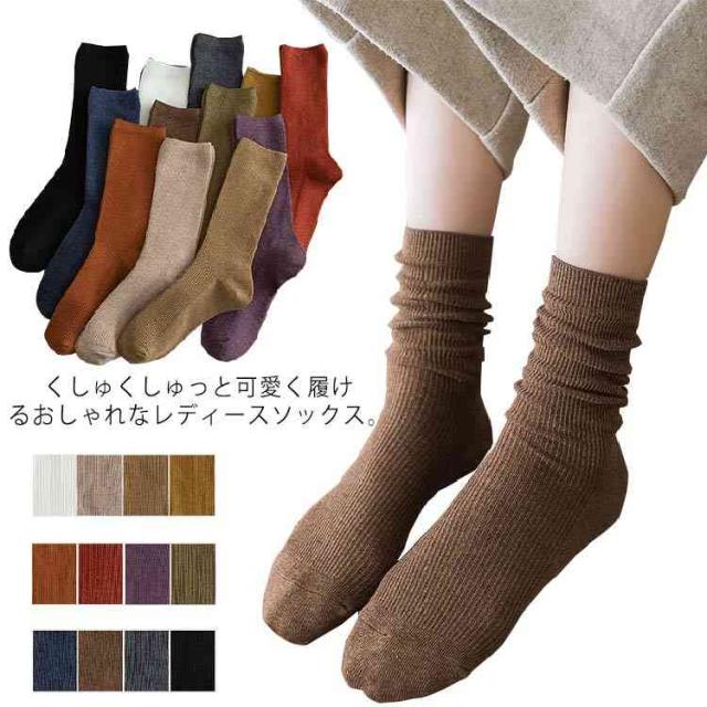靴下 レディース ソックス 5足セット クルーソックス ミドル丈 レディース靴下 綿 ガーリー 送料無料 ルーズソックス おしゃれ かわいい くしゅくしゅ 婦人 女性用 秋冬 無地 春夏 ハイソックス ムレない靴下 くつした