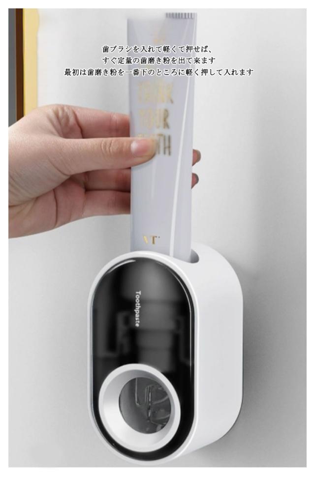 自動 歯磨き粉ディスペンサー 壁掛け式 歯磨き粉 歯みがき粉 歯磨き剤 ディスペンサー 収納 真空押し出す 取り付け簡単 穴開け不要 水洗いOK 子供用 大人用 洗える 浴室 洗面台収納 粘着テープ付き 防水