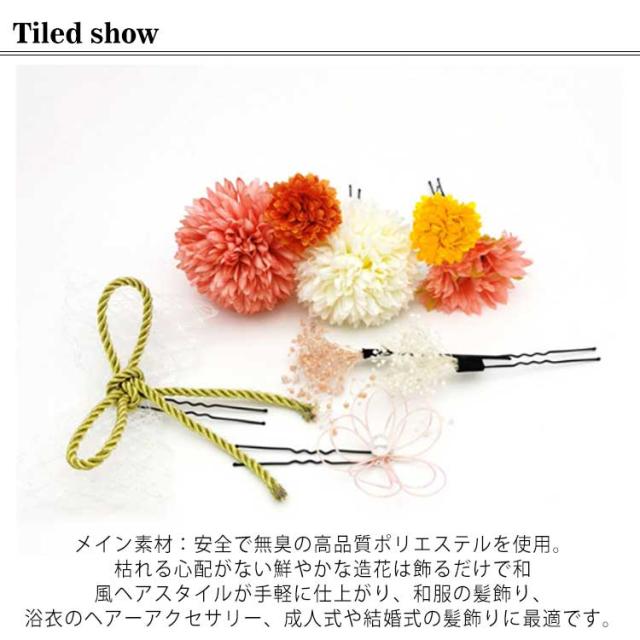 | 【髪飾り9点セット】メイン素材:安全で無臭の高品質ポリエステルを使用。枯れる心配がない鮮やかな造花は飾るだけで和風ヘアスタイルが手軽に仕上がり、和服の髪飾り、浴衣のヘアーアクセサリー、成人式や結婚式の髪飾りに最適です。 【プレゼントにも最適】アーティフィシャルフラワー(造花)のダリアとマムとパールシャワー、アジサイピック、タッセルの髪飾り9点セット、コーディネートを楽しんでいただけます。アレンジしやすい可愛らしいかみかざりは、幅広い年齢の方に愛用頂けます。友達、妻、娘、母親、大切な方への贈り物にも最適です! 【色とりどり】色とりどりの花が鮮やかで、大小の花が大事な日を彩る、アレンジ次第で大人から子供まで、卒業式、成人式、七五三、花火大会、結婚式、発表会、パーティーなどさまざまなシーンでお使いいただけます。 【つけやすい】お花の後ろにUピンがつき、パールシャワーとタッセルにもUピンをつけております。簡単でつけやすい、様々なヘアースタイルに合わせやすいです。初めての振袖から結婚式等パーティー、夏の浴衣姿など一年通して活躍できる髪飾りです。 | |