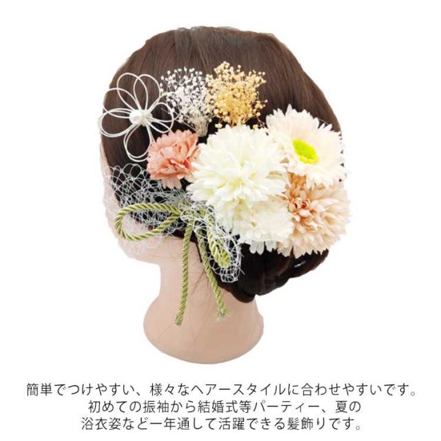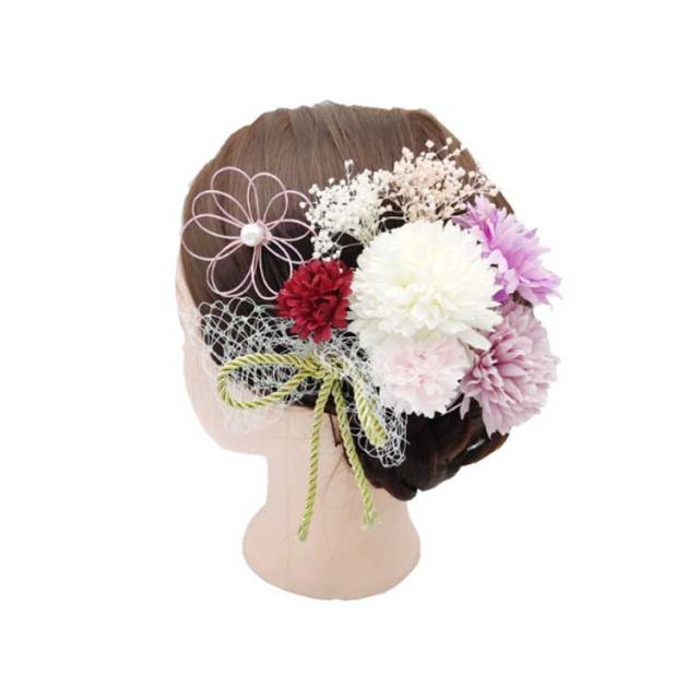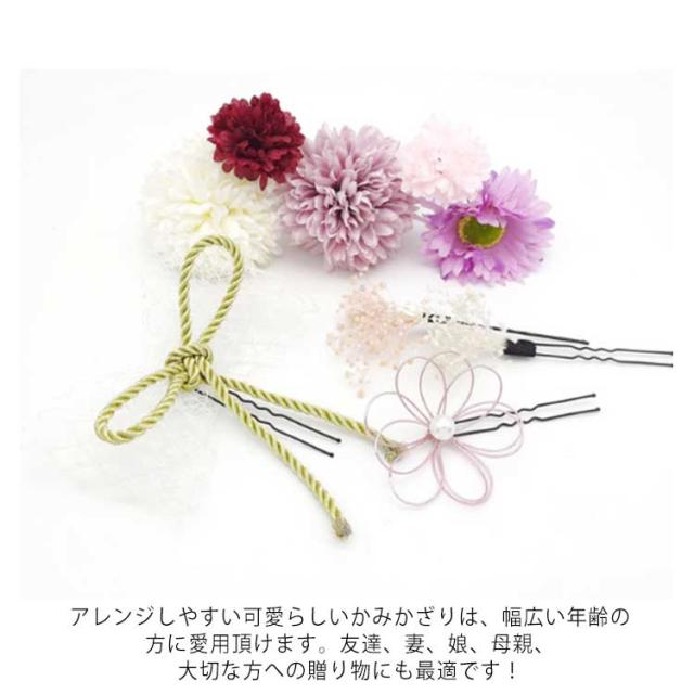 髪飾り 成人式 結婚式 かすみ草 つまみ細工 赤 ドライフラワー お花 水引 卒業式 七五三 和装 着物 浴衣 袴 手作り コーム Uピン パール 黄緑 紫 白 ショートヘア ウェディング 三歳 七歳 セット 大きい かんざし