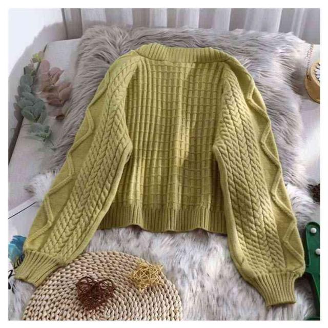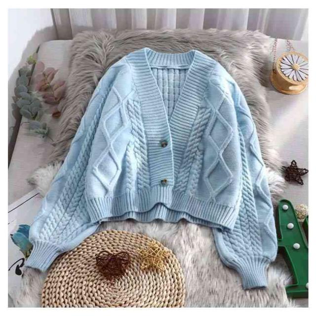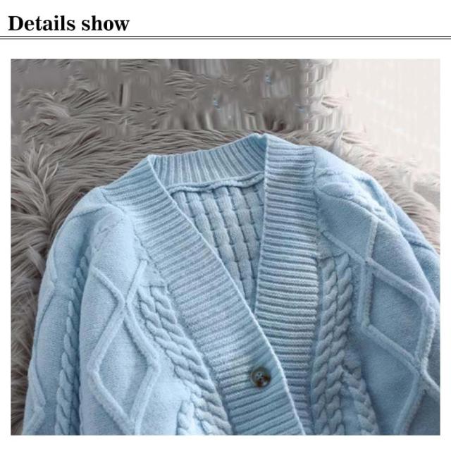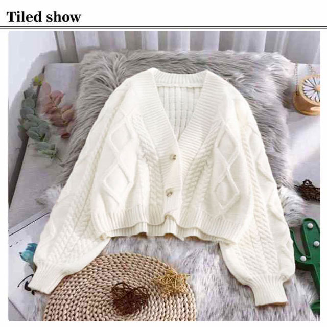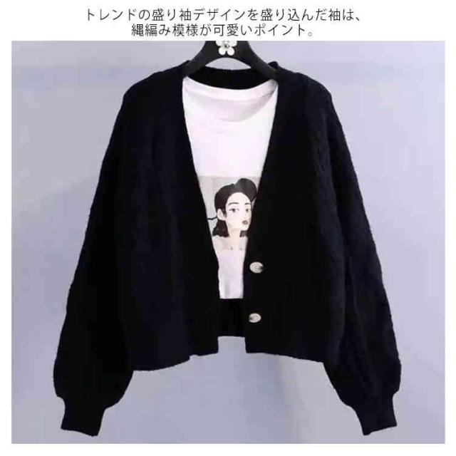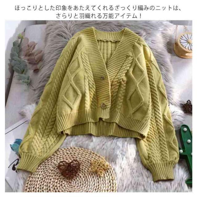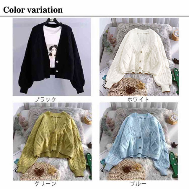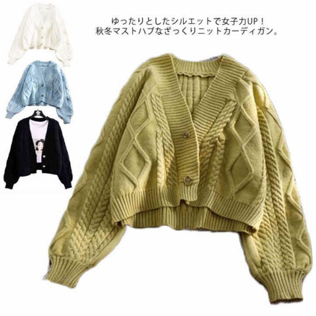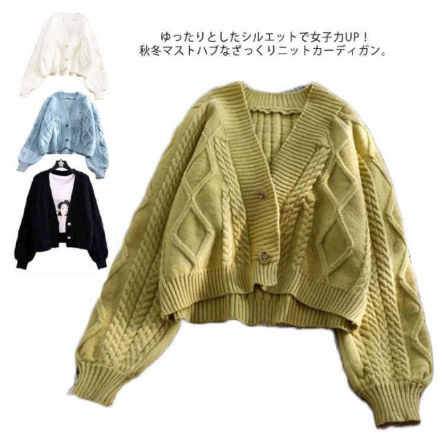 カーディガン ニット セーター ゆったり ざっくり編み ケーブル編み 春 秋冬 プルオーバー 羽織り ショート丈 厚手 大きいサイズ vネック カジュアル 袖ボリューム オフィス 白