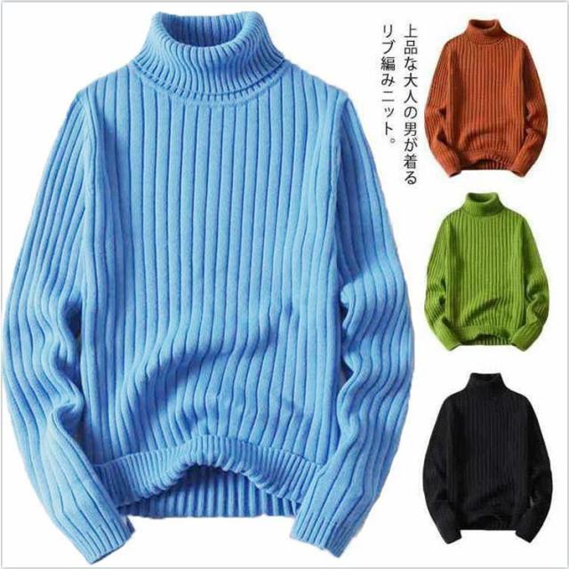 【送料無料】ニット セーター メンズ タートルネック 全5色 リブ編み 無地 細身 タイト スリム フィット インナー トップス ブラック ホワイト グリーン ブルー 黒 白 大きいサイズ M L 2L 3L 4L 春 秋 冬 シンプル