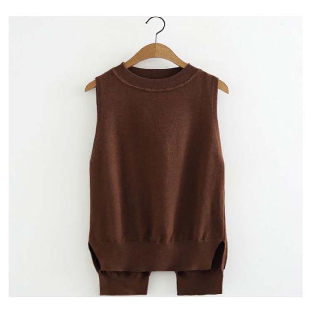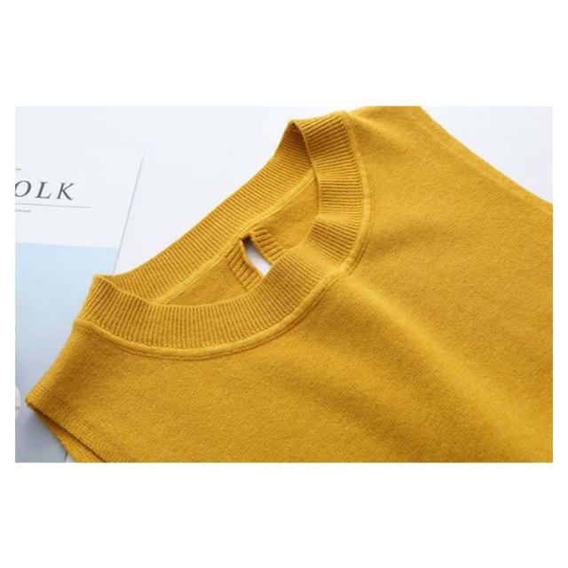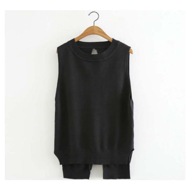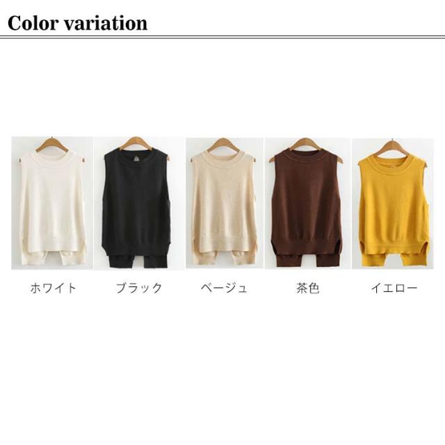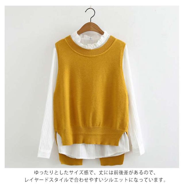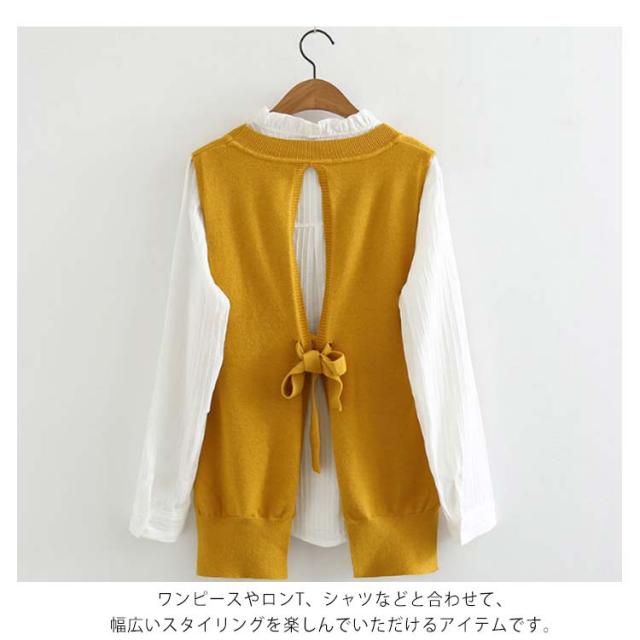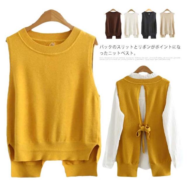 ベスト レディース ニットベスト 後ろ スリット Vネック リボン 全5色 ショット丈 前後差 レイヤード コーデ ノースリーブ トップス 普段着 韓国 シンプル 無地 春 秋 冬 オフィス 黒 ブラック ベージュ おしゃれ 大人 可愛い M-4L (送料無料)