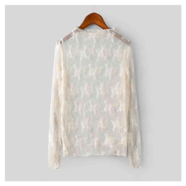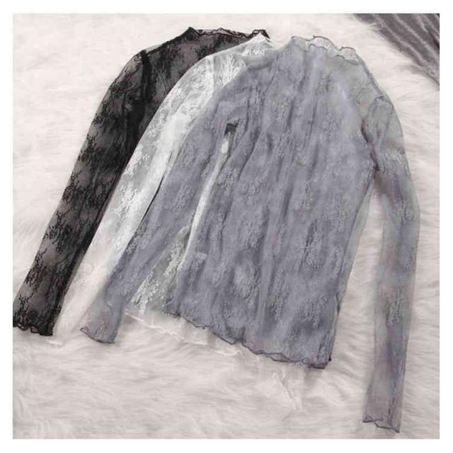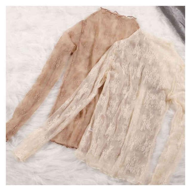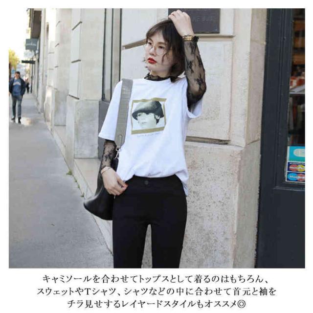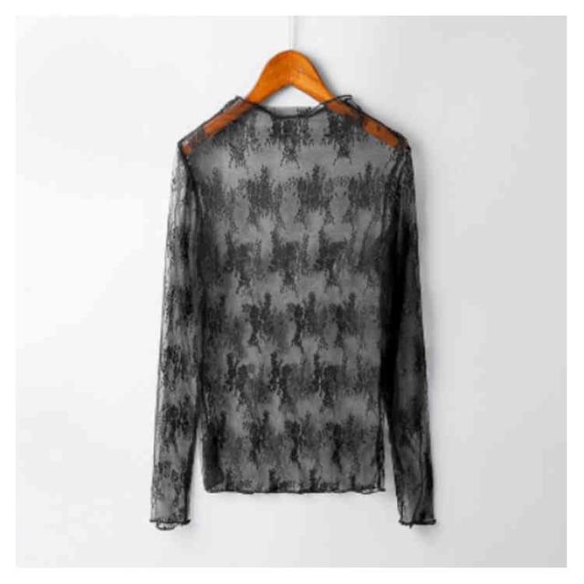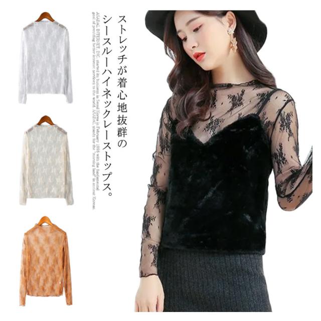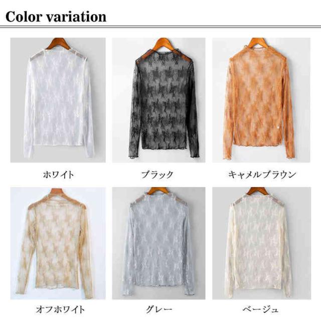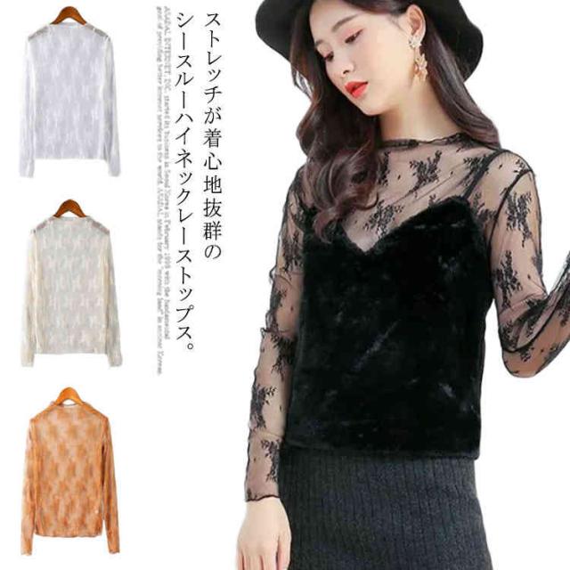 (送料無料)シアートップス チュールトップス レディース 長袖 ハイネック シースルー メロウ インナー 花柄 透け感 レース