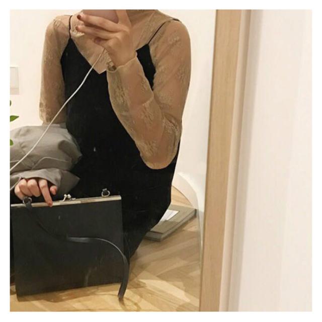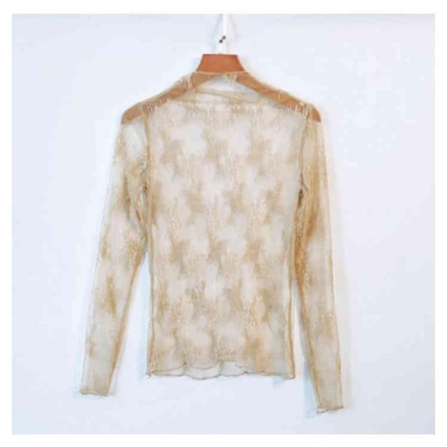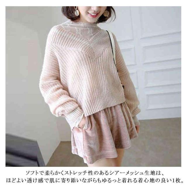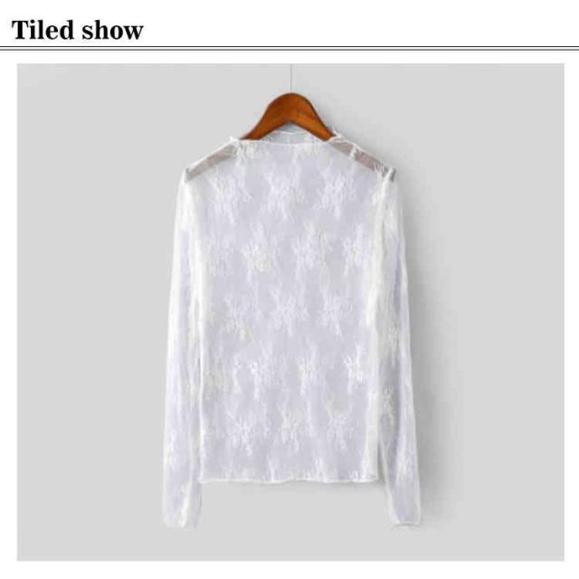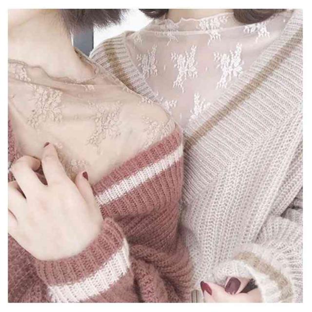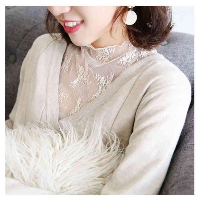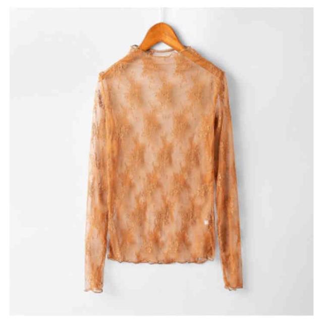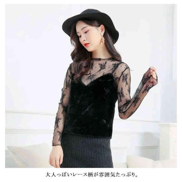 (送料無料)シアートップス チュールトップス レディース 長袖 ハイネック シースルー メロウ インナー 花柄 透け感 レース