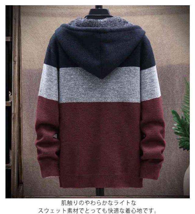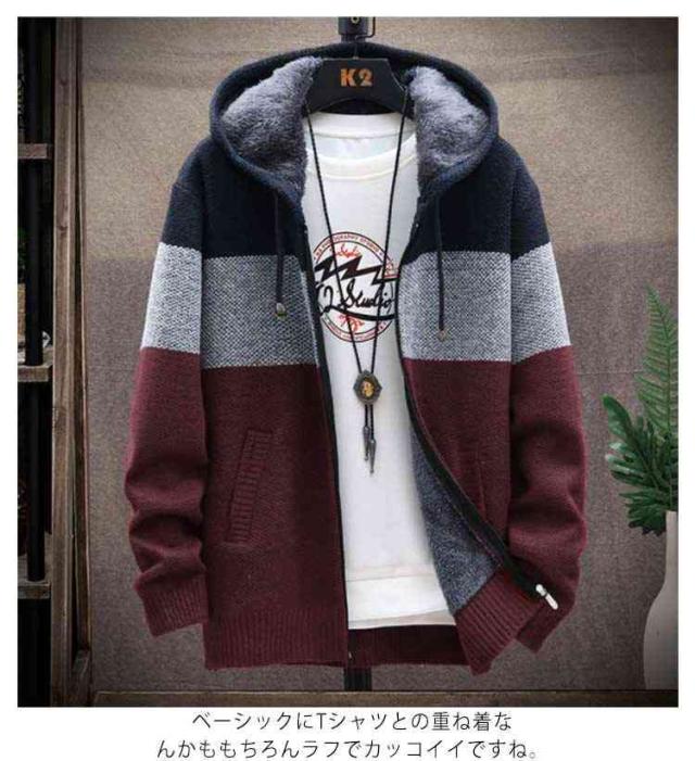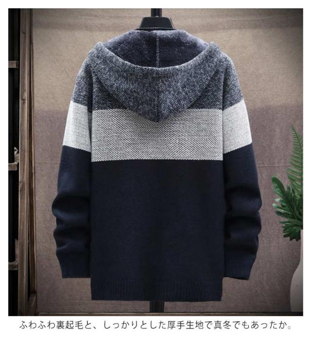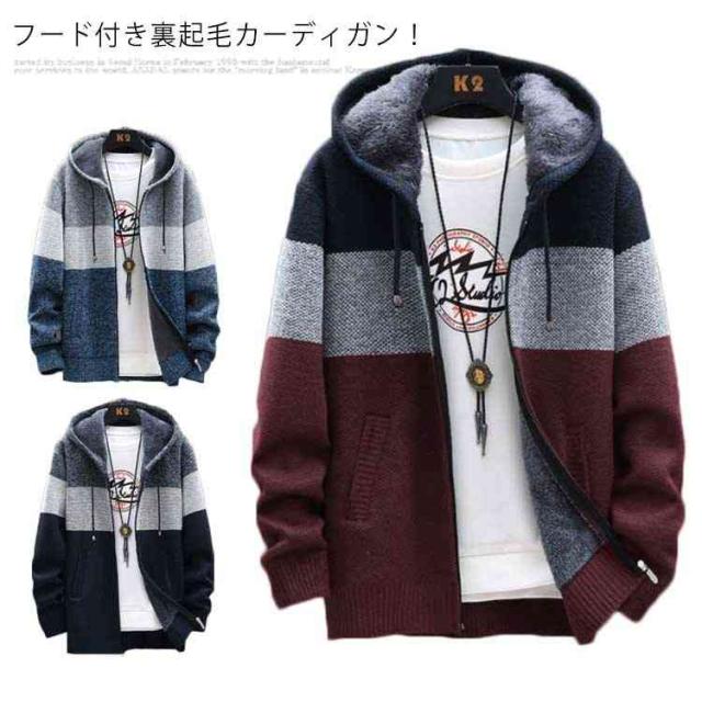 カーディガン メンズ 裏起毛 ジャケット 長袖 秋冬 ジップアップ ニットカーディガン 厚手 セーター ニット コート スウェット パーカー スポーツ 杢柄 秋冬 フード付き ゆったり ボア 防寒 暖かい あったか 冬物 秋物 男性 大人 カジュアル 無地