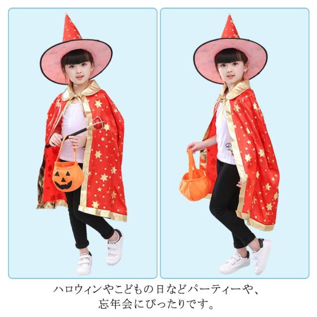 | (デザイン)マントと帽子は星で飾られており、魔法使いのようなです。 かぼちゃのかばんやほうきと合わせるとさらに完璧になります。 (適用場合)ハロウィンやこどもの日などパーティーや、忘年会にぴったりです。 ハロウィン、フェスティバル、演芸会、仮装パーティー、クリスマスパーティー、忘年会、文化祭、舞踏会など、様々な場面で活躍できますように。 (雰囲気満点)ハロウィーンホームパーティーやイベントに大活躍しています。ハロウィーの雰囲気を高めます。 (急速変装)ハロウィンの雰囲気あふれるコスチュームで、すぐに変装できます。子供もフェスティバルで楽しく遊ぶことができます。 (参考サイズ)マント丈約90cm、男女兼用で、男の子と女の子が似合うタイプです。フリーサイズなので、100〜160cmの子供でも着用できます。 | |