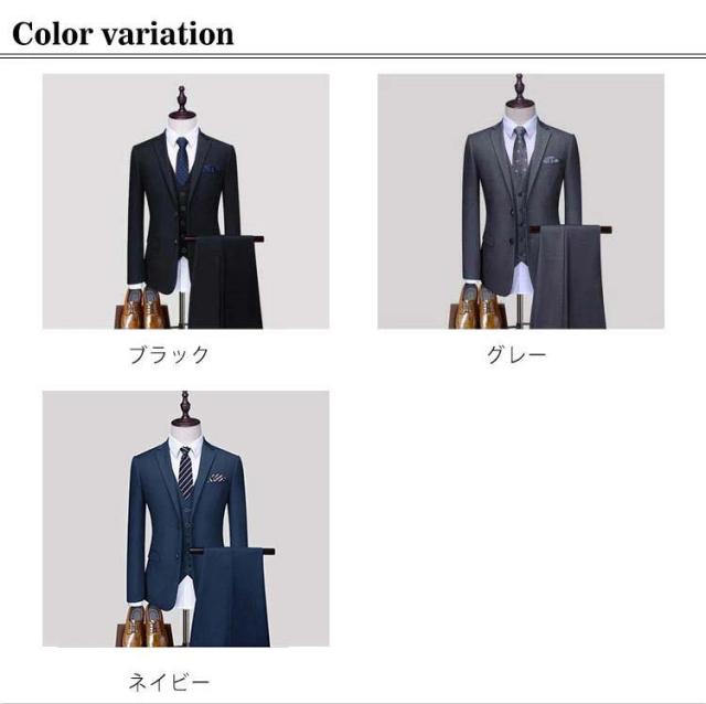 【送料無料】メンズスーツ スーツ 3点セット ベスト付き 2つボタン スリーピーススーツ スリムスーツ 春夏 秋冬 男性 ビジネス フォーマル 結婚式 面接 オシャレ セール SALE 小さめ 大きいサイズ S M L 2L 3L 4L 5L ブラック ネイビー グレー