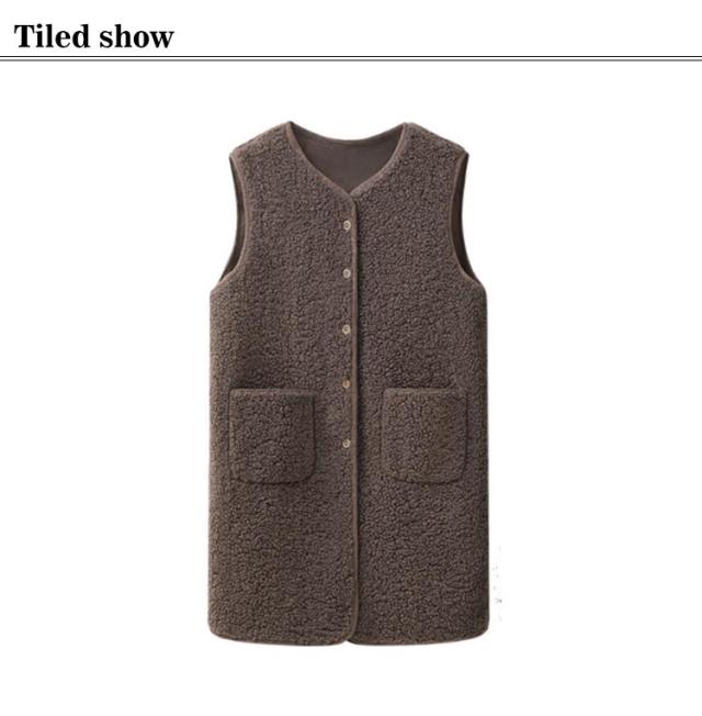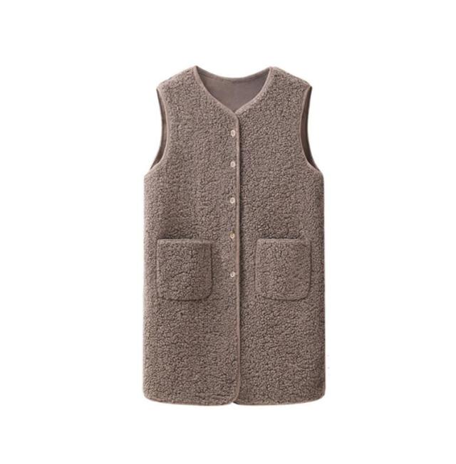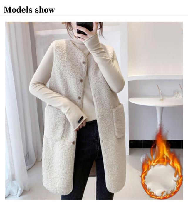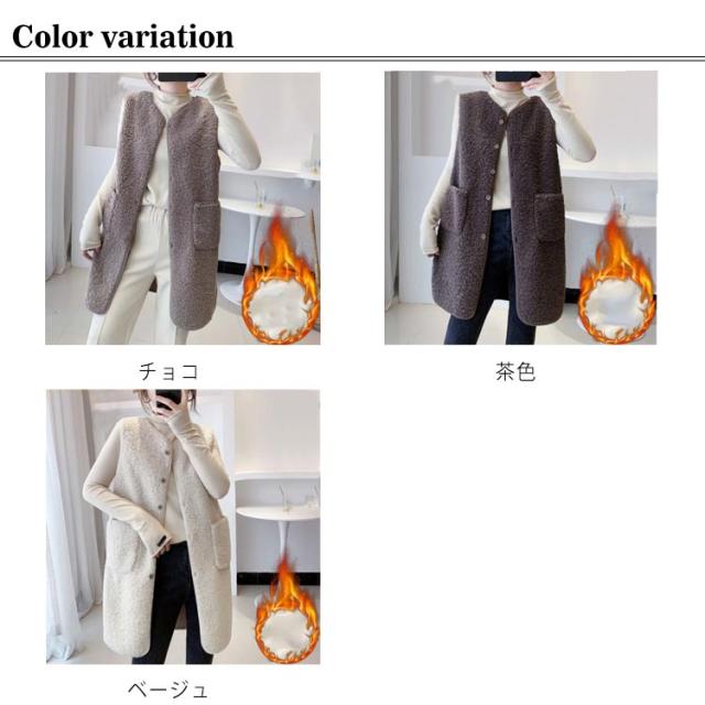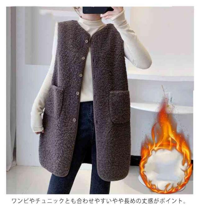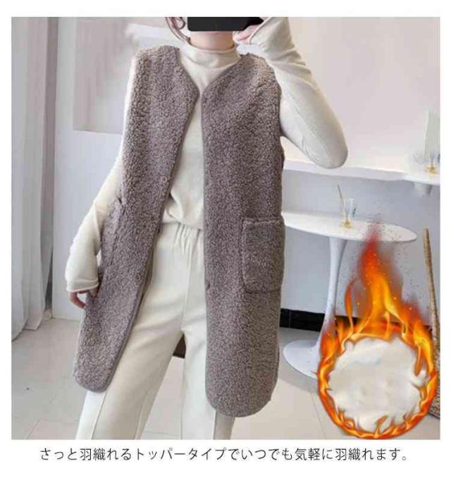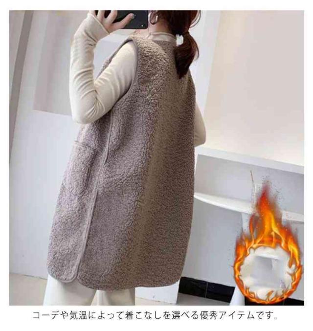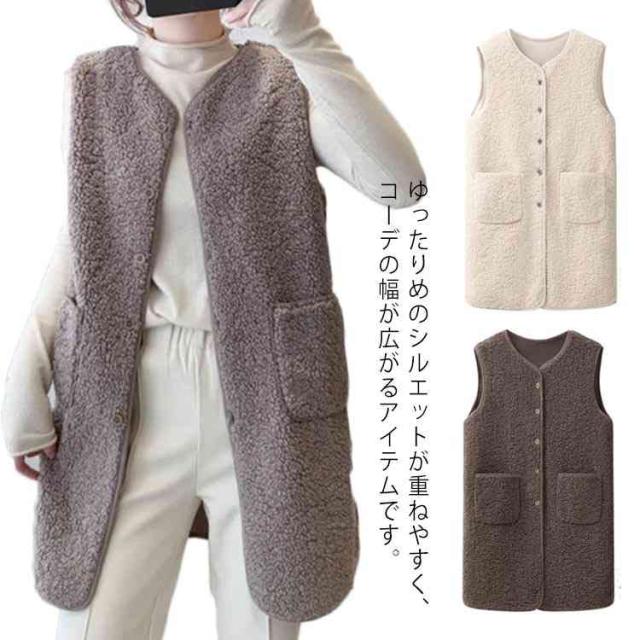 【送料無料】ボアベスト レディース ロング 前開き 秋冬 アウター ノーカラー 羽織り もこもこ 裏起毛 トップス ゆったり ノースリブ あたっか ポケット付き カジュアル 大きいサイズ