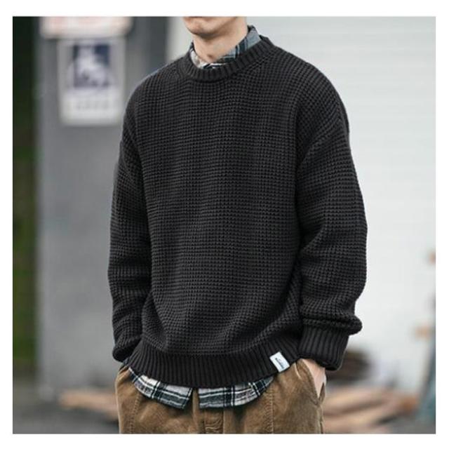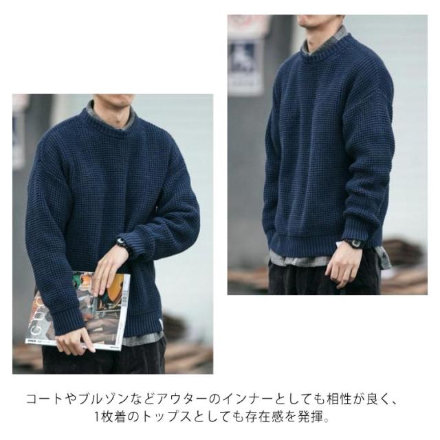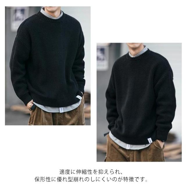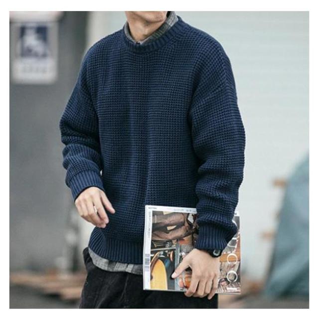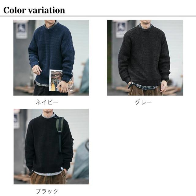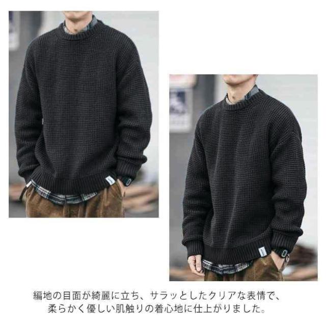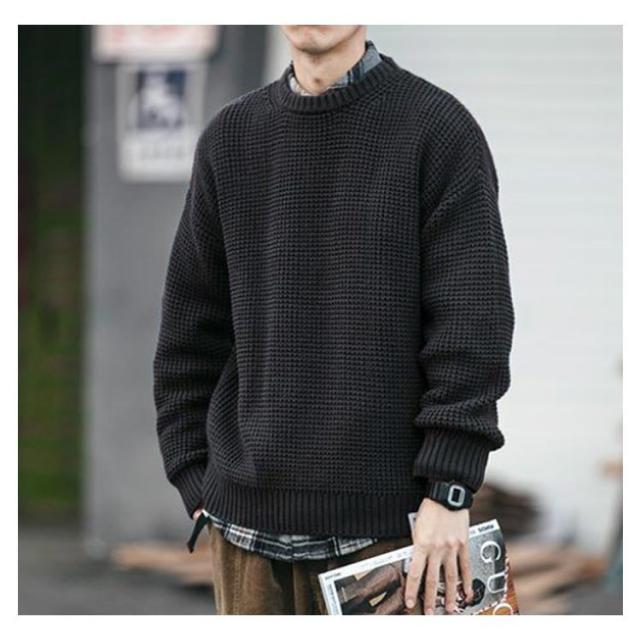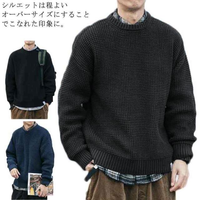 【送料無料】ニット 長袖 メンズ トップス セーター クルーネック 丸ネック 無地 かわいい ゆったり 大きめ オーバーサイズ プルオーバー カジュアル 韓国 シンプル 大人 学生 春 秋 冬 黒 ネイビー 紺 大きいサイズ L 2L 3L 4L