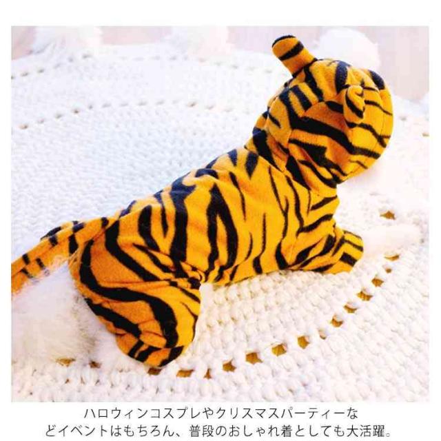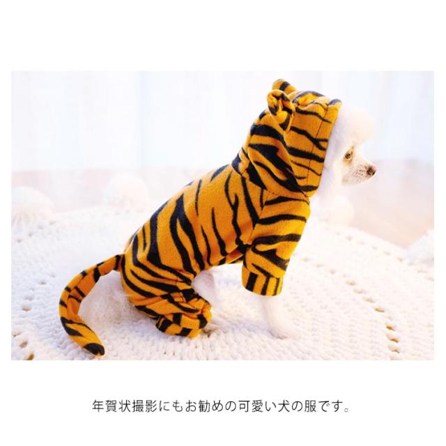 つなぎ カバーオール 送料無料 虎柄 コスプレ フード 耳 付き ドッグウェア ハロウィン 年賀状 虎 寅年