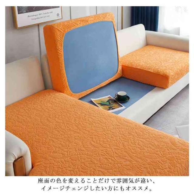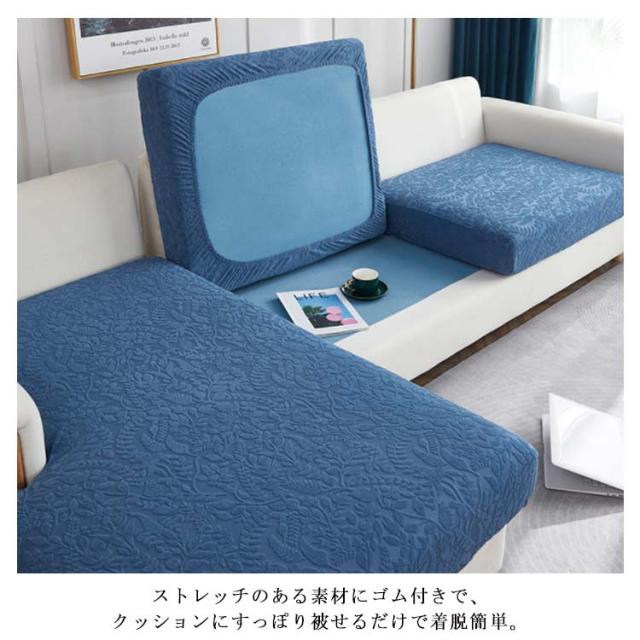 | 女性一人でも手軽セットできるソファ座面カバー。 浮き出るようなボタニカル模様が高級感ある空間を◎ 伸縮性抜群の素材でぴったりフィットし、寄れたりズレたりしない!まるでオーダーメイド。毎日ソファーカバー整理の苦労から解放! ストレッチのある素材にゴム付きで、クッションにすっぽり被せるだけで着脱簡単。 嬉しい撥水加工!ペットやお子様のいるご家庭に最適!ソファー座面をキズ、汚れ、ホコリなどから360度守ってくれて、ペットの引っ掻き対策としても◎ 変形しにくく乾きやすい素材、洗濯機で丸洗いできるからいつでも綺麗に♪不意な汚れを気にせず、お子様やペットが気軽に寛げるソファーに変身! 柔らかい素材でソファを傷つけることなく安心してお使い頂けます。 座面の色を変えることだけで雰囲気が違い、イメージチェンジしたい方にもオススメ。 カラバリエーション豊富!違うカラーを組み合わせて自分だけのインテリアを作ってもとてもステキ! | |