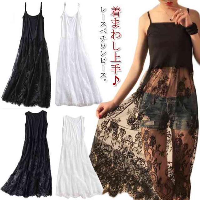 送料無料 ペチコート インナーワンピース レースワンピース レディース マキシワンピ 重ね着 チュール タンクワンピース 大きサイズ 白 黒