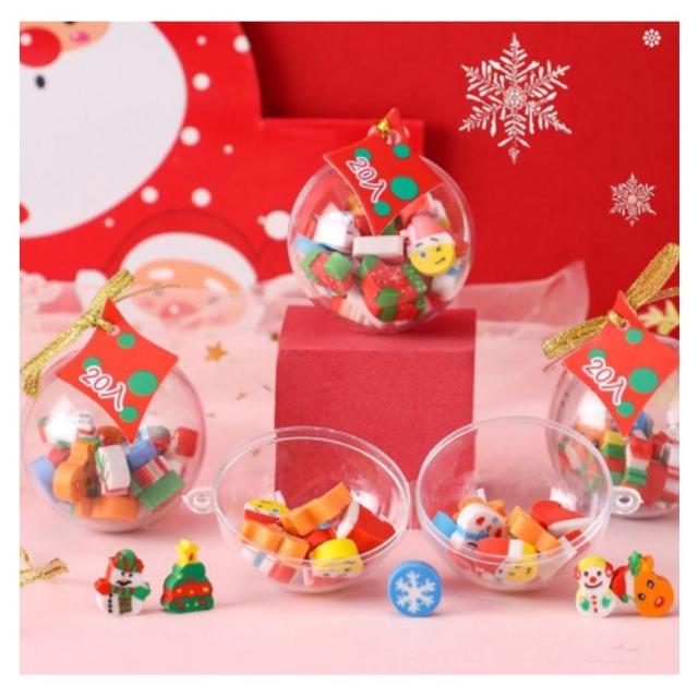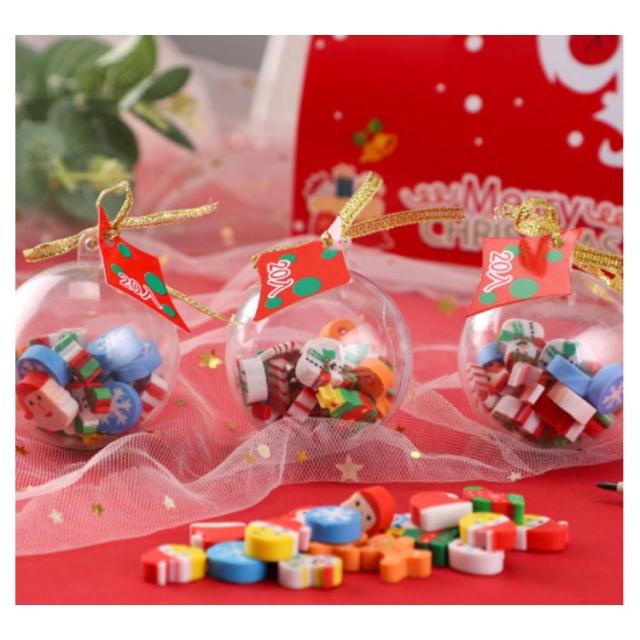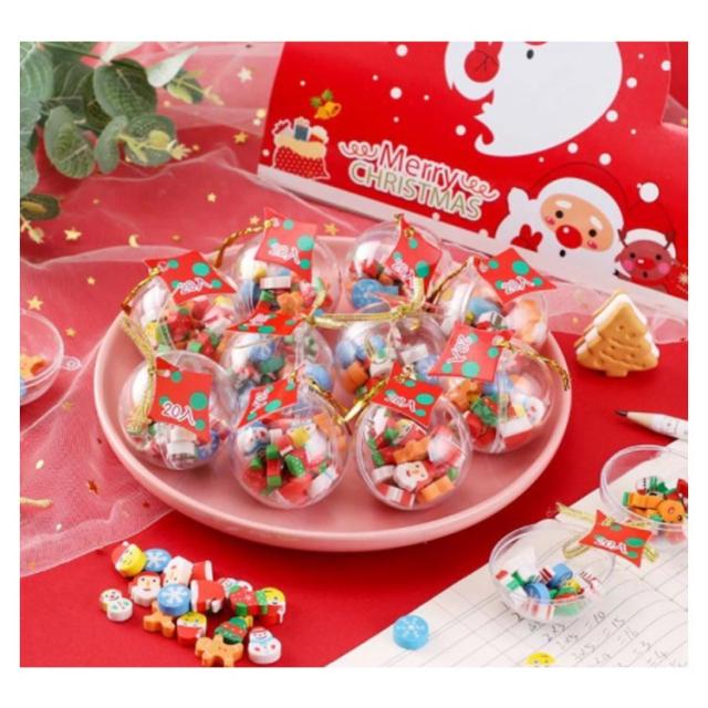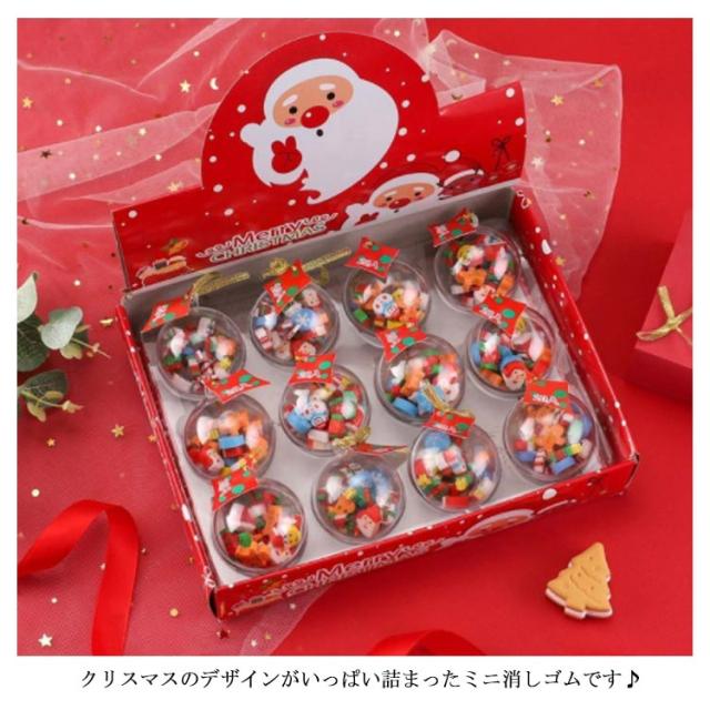 ギフト 子供会 クリスマス 12組セット クリスマス ボール型ケース 文具 お祭り 誕生日 子ども会 消しゴムすくい ミニ消しゴム 保育園 幼稚園 景品 イベント ボール型ケース 施設