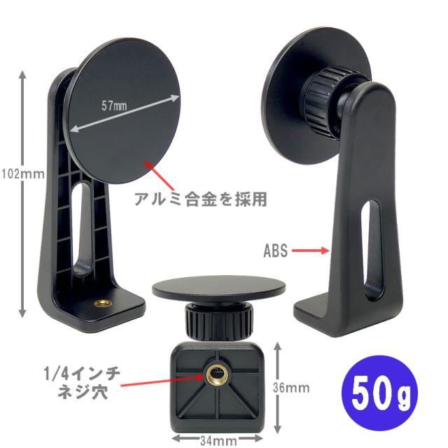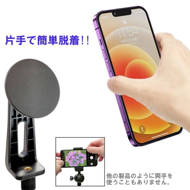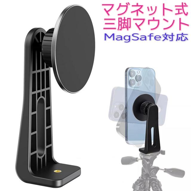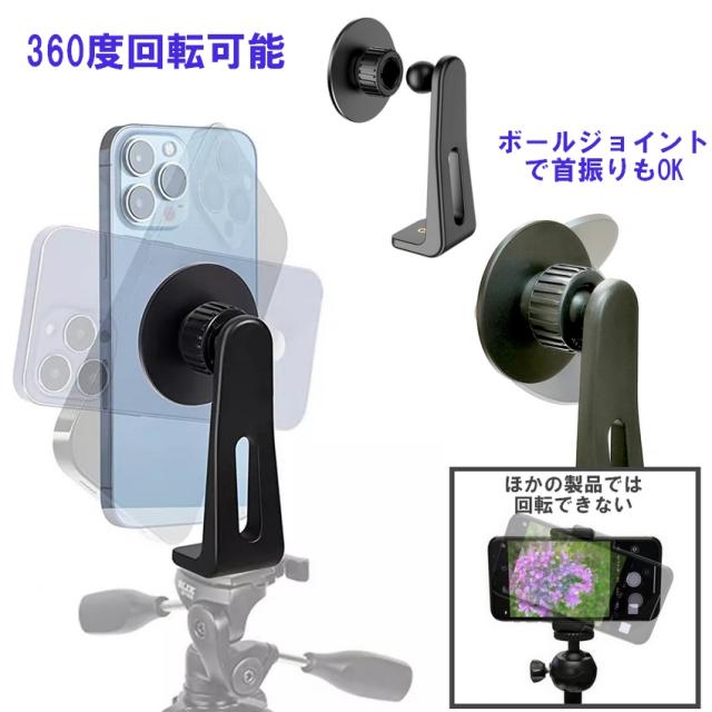 三脚用スマホホルダー マグネット式 magsafe iphone 雲台 1/4ネジ穴 超強力磁力 三脚マウント magsafe対応 360度回転 スマホスタンド 軽量 コンパクト 三脚アダプター 便利 片手操作角度調整可能 動画撮影 旅行 運動会 テレワーク 1/4インチネジ 送料無料