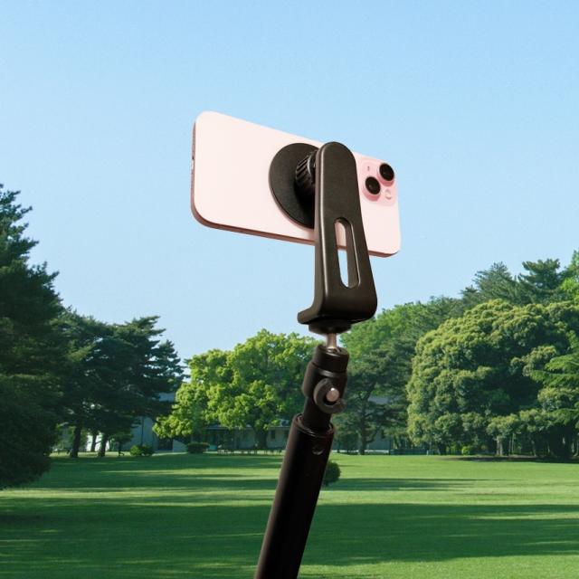 〇マグセーフに対応しているため、iPhoneをクリップで挟んだり、ネジで固定するの必要はなく、片手でわずか1秒で簡単に着脱が可能な雲台です。