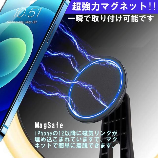 ※Magsafe対応ではないスマートホンの場合、Magsafe対応のスマホケースや専用のメタルリング、プレートを別途購入してお使いください。