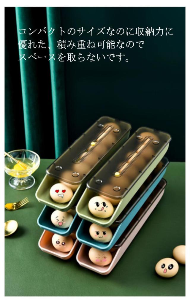 | 【スリムなのに収納力抜群】 コンパクトのサイズなのに収納力に優れた、積み重ね可能なのでスペースを取らないです。 【自動落ち式】 前の卵を取ると後ろの卵は自動的に前に転がります。自動ローリングで壊れないです。卵の保管するのに役立ちます! 【滑り止め&積み重ね可能】 頑丈の素材で作られたので、いくつかを積み重ねても壊れる心配はありません!滑り止めの脚付き、落下防止です。 【落下防止】 収納ケースの中身は安定した設計を採用して、卵は転がりません。 | |