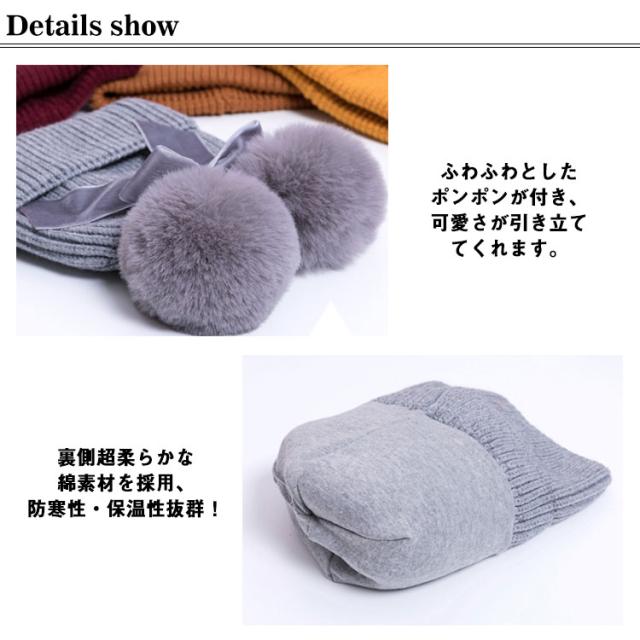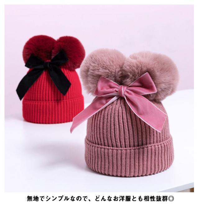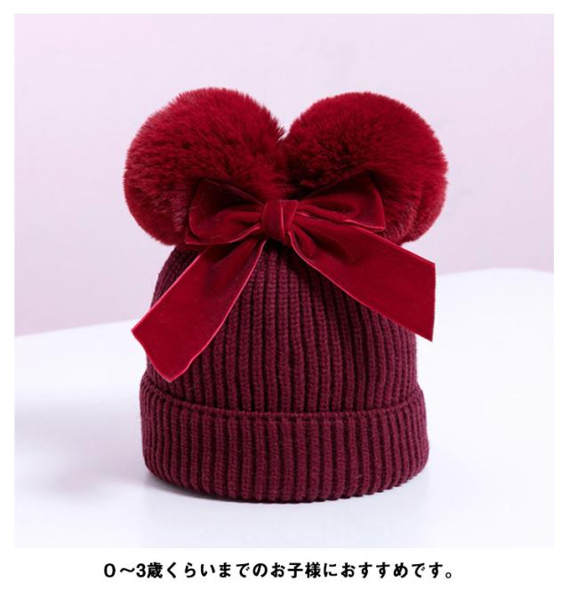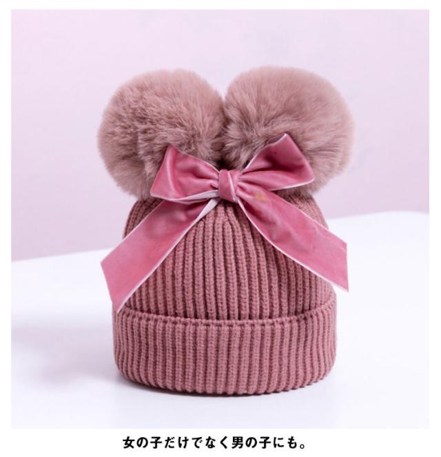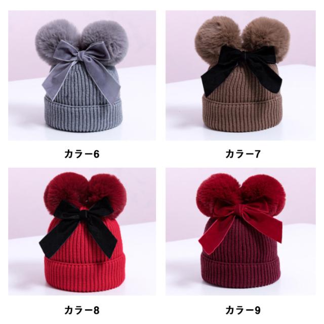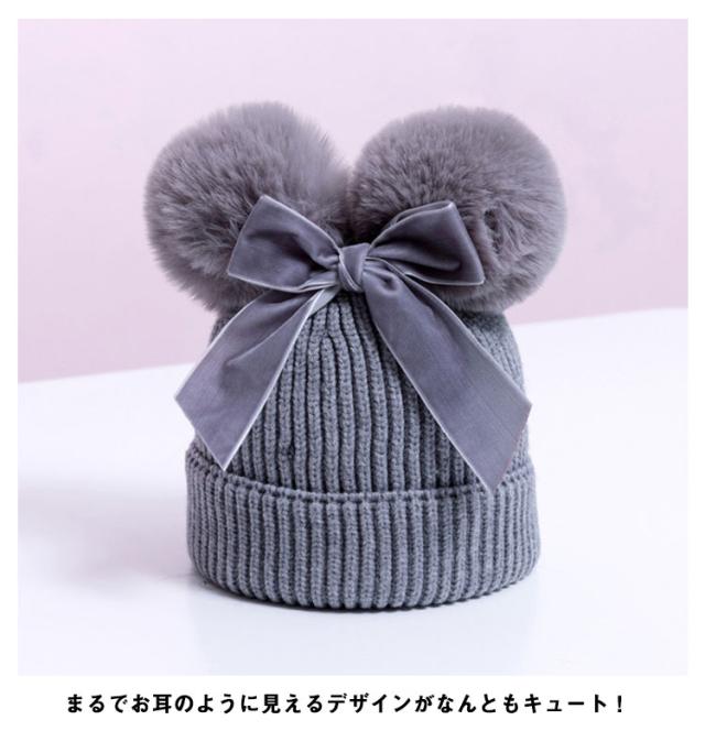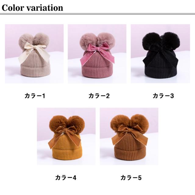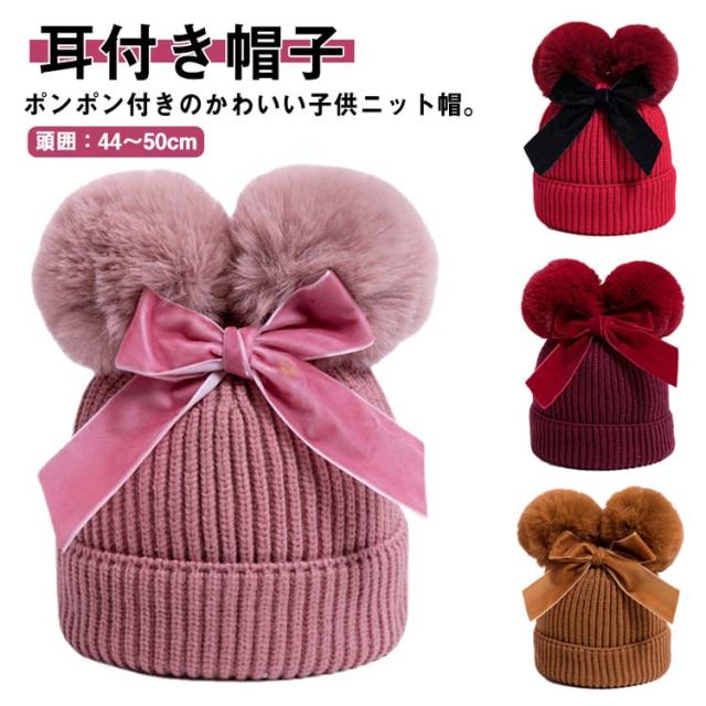 ポンポン ニット帽 毛玉 帽子 キッズ ベビー 耳付き帽子 耳付き ベビー帽子 ベビーニット帽子 ケーブル編み ニット あったか 子供 子ども 女の子 男の子 おしゃれ かわいい 冬 小物 防寒 プレゼント 誕生日 1歳 2歳 3歳 送料無料