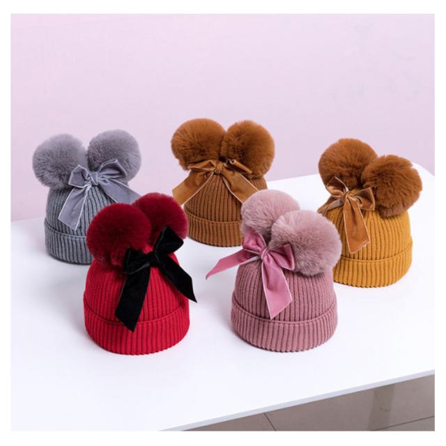 | トップに2つの大きなボンボンが付いたニット帽。 帽子のひさしは折り返しデザインで、暖かくて落ちにくいです。 ポンポンつきデザイン、子供の可愛らしさを演出。 あったか素材でお出かけ、外遊びに大活躍♪ 防寒対策にも◎プレゼントにも喜ばれる帽子です! | |