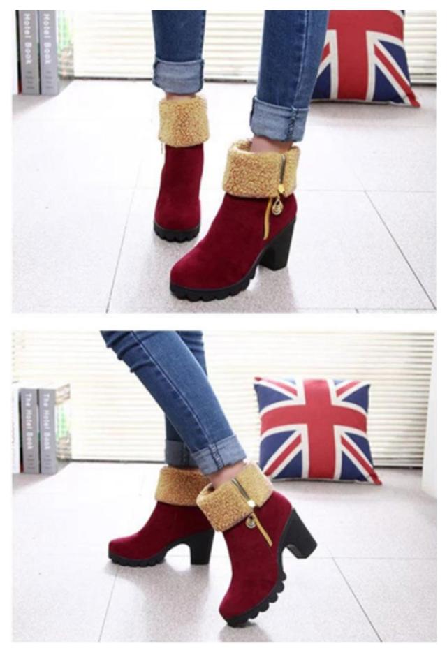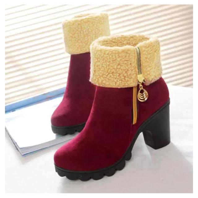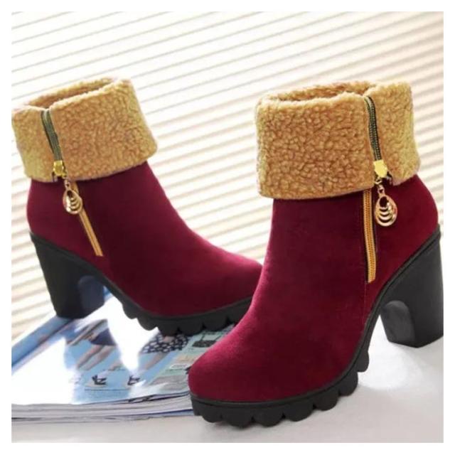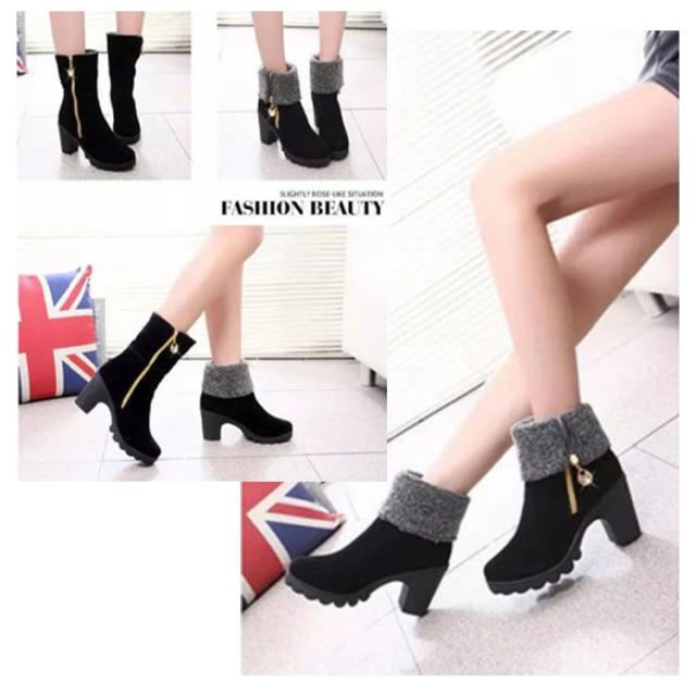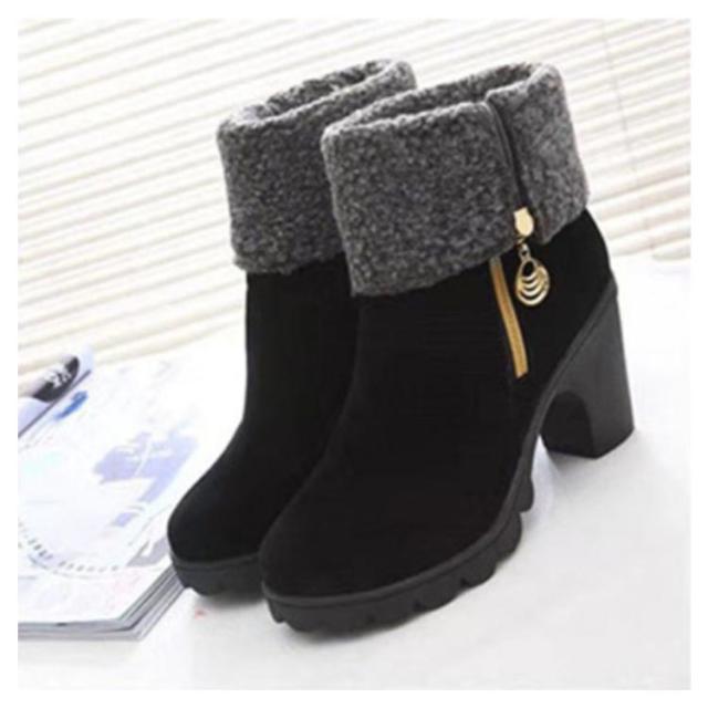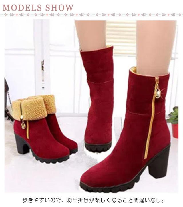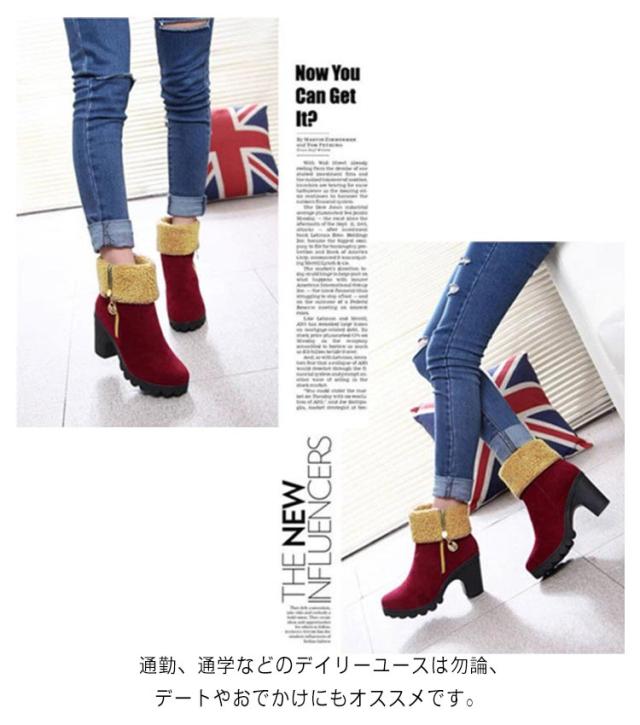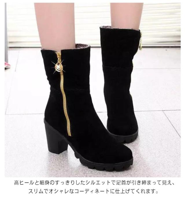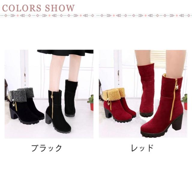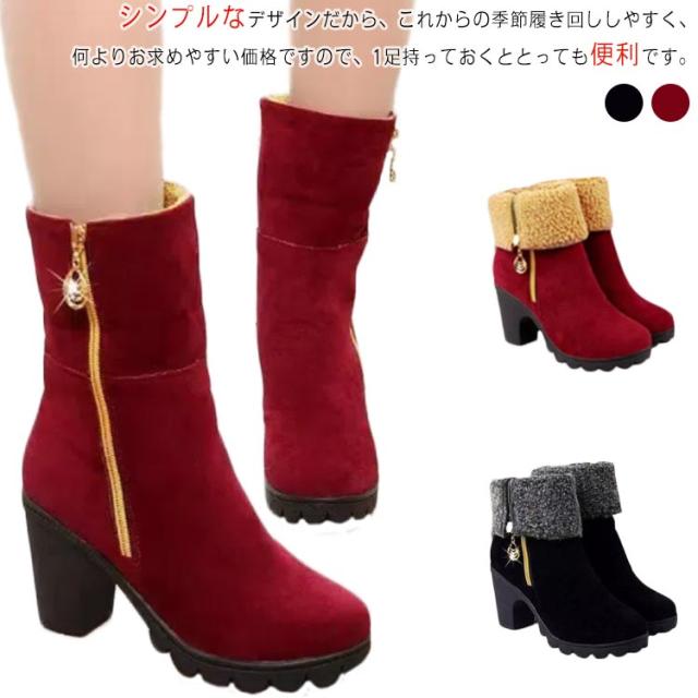 ブーツ 裏起毛 レディース 2WAY チャンキーヒール ショートブーツ 裏ボア レディースシューズ ブーティ ハイヒール サイドファスナー 太ヒール アンクルブーツ オフィス 通勤 通学 美脚 韓国ファション 22.5-25.0cm