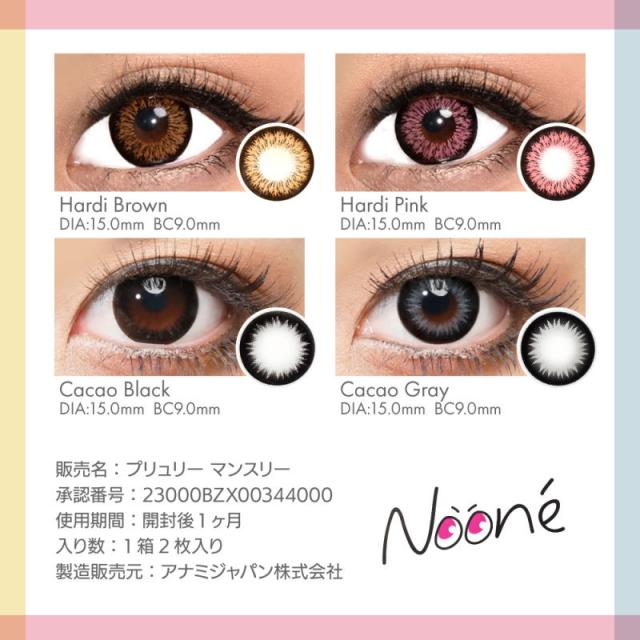 Noone Monthly 1箱2枚 度あり 度なし ヌーン マンスリー 1ヶ月 ハーフ ナチュラル コスプレ 韓国 アイドル風 カラー コンタクト