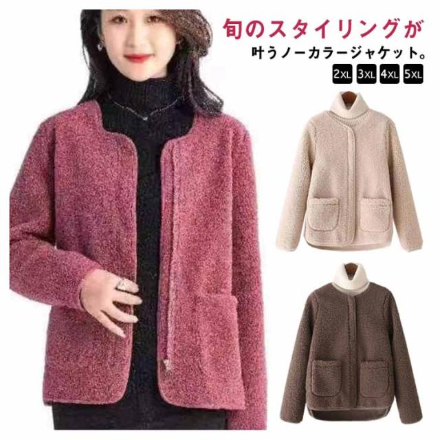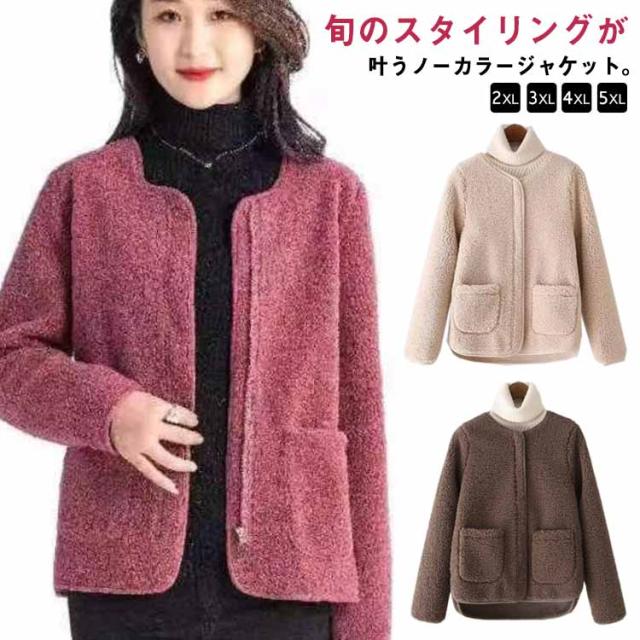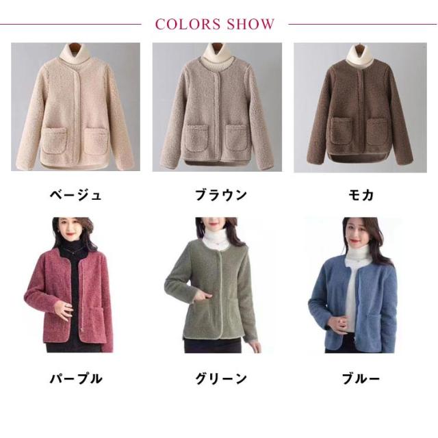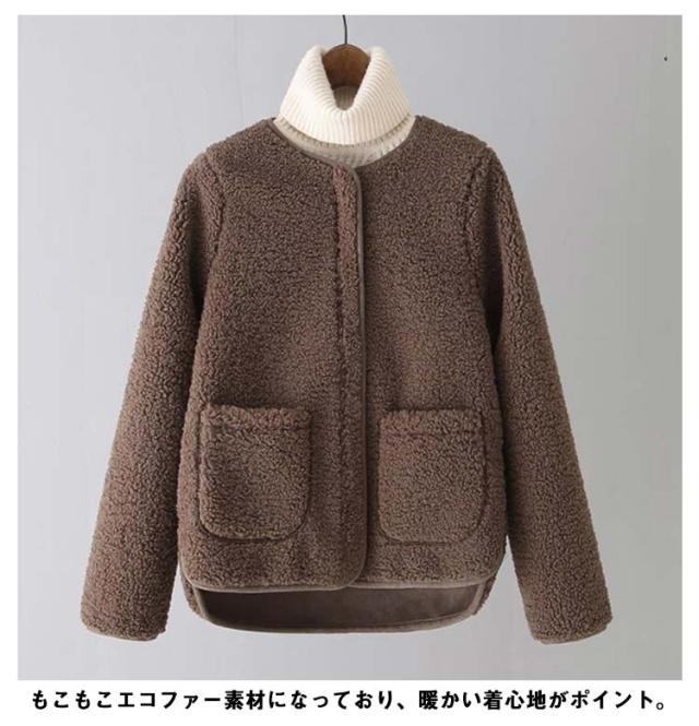 レディース 秋 冬 ジャケット アウター ノーカラージャケット 送料無料 ファーコート ボアジャケット ブルゾン ジャケット ノーカラーコート エコファー 暖かい カーディガン コーディガン ショート丈 ふわふわ もこもこ 大きサイズ 全6色
