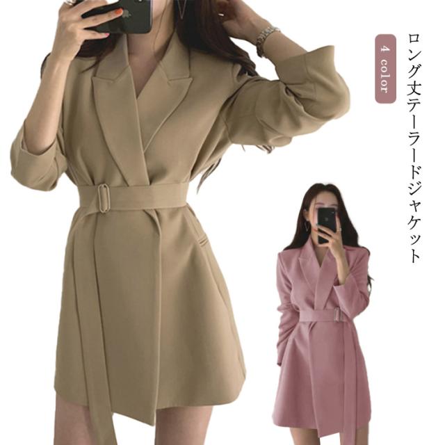 テーラード ジャケット ロング スーツジャケット レディース テーラードジャケット アウター 春アウター ジャケット 大きいサイズ 無地 フォーマル スーツ 上着 通勤 OL 春 夏 秋 送料無料 ベルト付き 入学式 卒業式 おしゃれ 20代 30代 40代