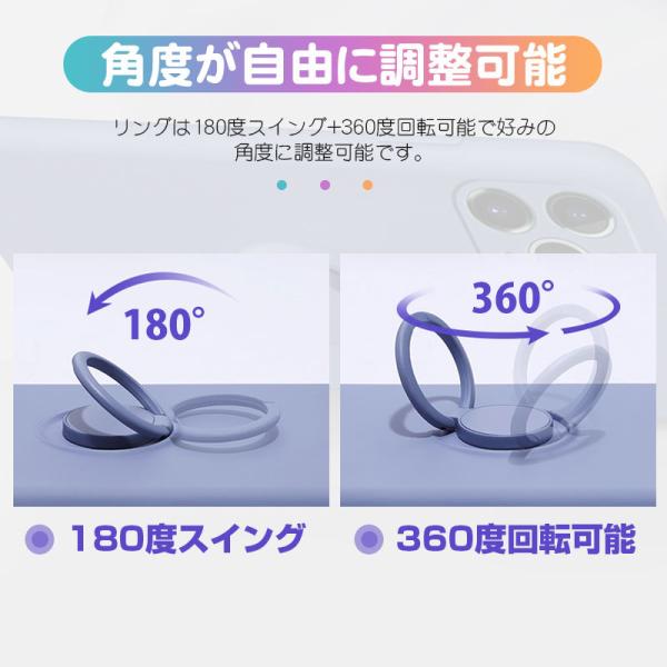 | 商品説明 | iPhone 13シリーズ iPhone 12シリーズ用リング一体型シリコンケースが登場しました。リング一体型なので、ケースからリングが外れることもなく、安心感は絶大です。使わない時はリングをぴったり収納でき、邪魔にならないです。まるでリングが付いていないかのような薄さを実現しました。リングに指を通し、親指の動きをもっと自由にさせ、操作性が向上し、落下防止に優れて片手での操作が楽々になります。リングを立てておくことでスタンドとしても使用可能で、持たず動画鑑賞などを楽しむことができます。リングは180度スイング+360度回転可能で好みの角度に調整可能です。ケース背面中央のメタルプレート部分はマグネット式車載ホルダーに対応し、マグネット式のホルダーにそのまま装着可能です。カメラレンズ周りまでフルカバーし、カメラの性能を損ねることなく、カメラレンズを傷からしっかりと守ります。赤ちゃんのおしゃぶりに採用している高品質液体シリコン素材を採用し、環境にも優しいです。表面はしっとり手になじみやすく色落ちがなくムラもありません。綿のような滑かな手触りが特徴です。万が一の落下時にも頑丈なシリコーンゴムで外的衝撃を吸収し、損害を最小限に抑えて大切なiPhoneを360度全面保護します。カメラレンズ周りと前面フレーム部分は本体より0.3mm高く設計されておりますので、デスク等に置いてもカメラレンズとスクリーンが直接触れることがなく、すり傷等を防止します。ケース表面は撥油コーディングが施されているので汚れ・埃・指紋が付きにくいです。付着しても簡単に拭きとれます。お手入れが簡単です。また、丸ごと水洗い可能で簡単に指紋や油汚れを落とせますので、いつでも清潔に使用することが出来ます。色褪せの心配もありません。柔らかく弾力性があるので、ひねりながら簡単に着脱できます。着脱の際にiPhoneを傷つける心配なしです。ケースの内側は柔軟なマイクロファイバー仕上げでiPhoneをやさしく保護します。トレンドを先取りした直線的でスタイリッシュなボディなので手にフィット!装着感ゼロの薄さ!まるでケースが付いていないような操作感!薄さにこだわりたいという人にはおすすめです。便利なストラップホール付きでお好きなストラップを付けて落下防止にも。ケースとiPhone本体の穴やボタンは完全フィットし、高級感を損なわない一体感を実現します。豊かなカラーバリエーションでその日のコーディネートや気分に合わせられます。 |