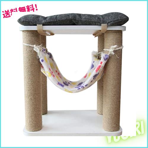 チャミ 猫爪とぎポール 爪磨き ツメとぎキャットタワー 麻縄巻き 腰掛け椅子 両用 ストレス解消 ハンモック付き