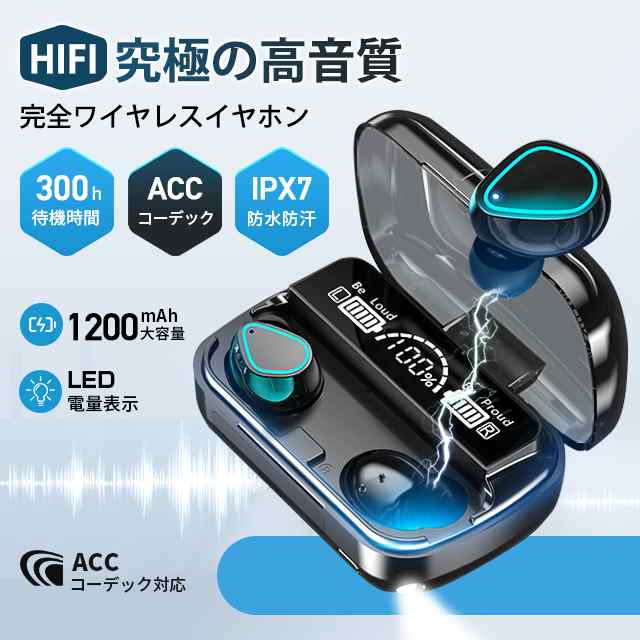 ワイヤレスイヤホン HiFi重低音 IPX7防水 Bluetooth5.2 自動ペア ノイズキャンセリング イヤホン 高音質 Android iPhone 適用 LED電量表