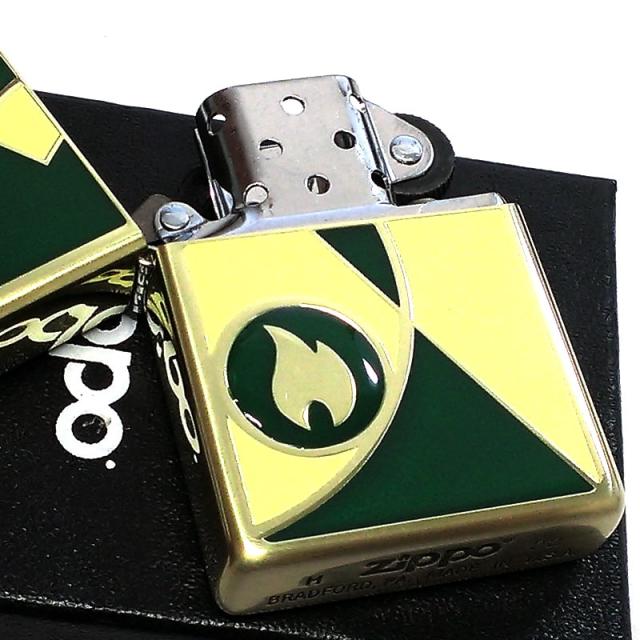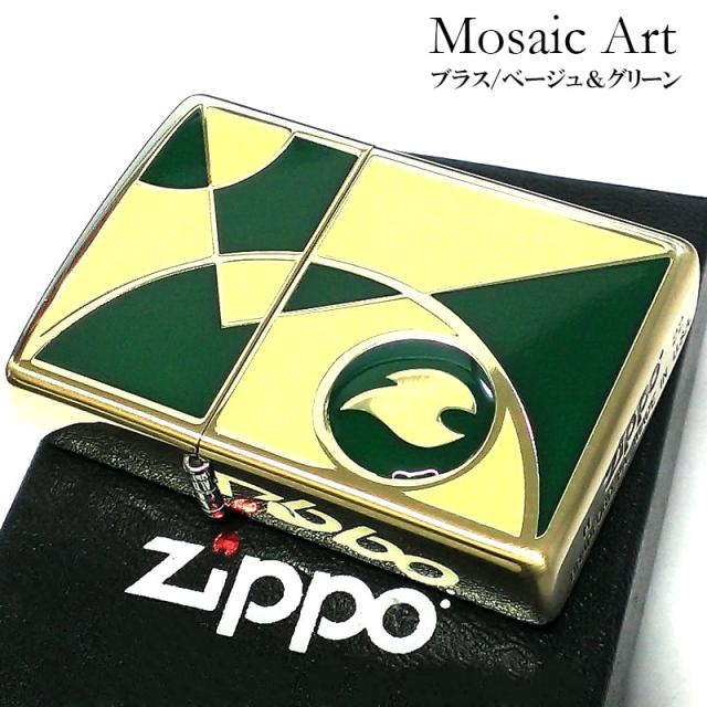 ZIPPO ライター モザイクアート かっこいい ジッポ ゴールド 炎 ロゴ ベージュ グリーン メンズ エポ盛り加工 金 おしゃれ プレゼント