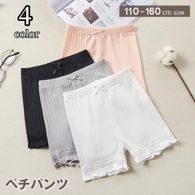 ペチパンツ インナーパンツ ペチコート 3分丈 キッズ ジュニア 子供 女の子 下着 肌着 見せパン リブ メロウフリル リボン
