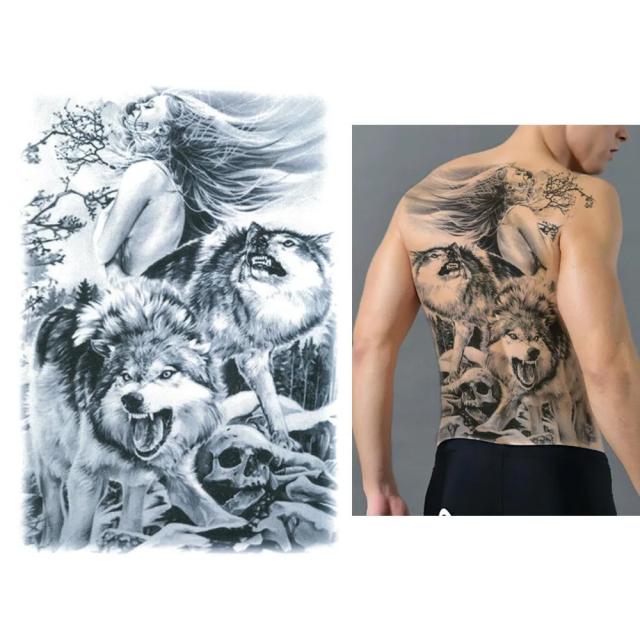 背中用 フェイクタトゥーステッカー 大きいサイズ ビッグサイズ ウルフ オオカミ 狼 女性 スカル 髑髏 ドクロ がい骨 がいこつ 骸骨 雪女 動物 アニマル タトゥシール メンズ レディース 仮装 変装 入れ墨 小道具 衣装 映画