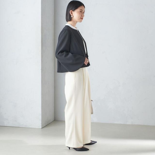 コンパクトなボレロ丈のため、ハイウエストなボトムスと相性良く着ていただけます。