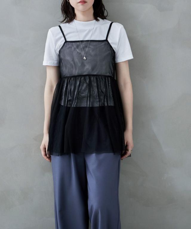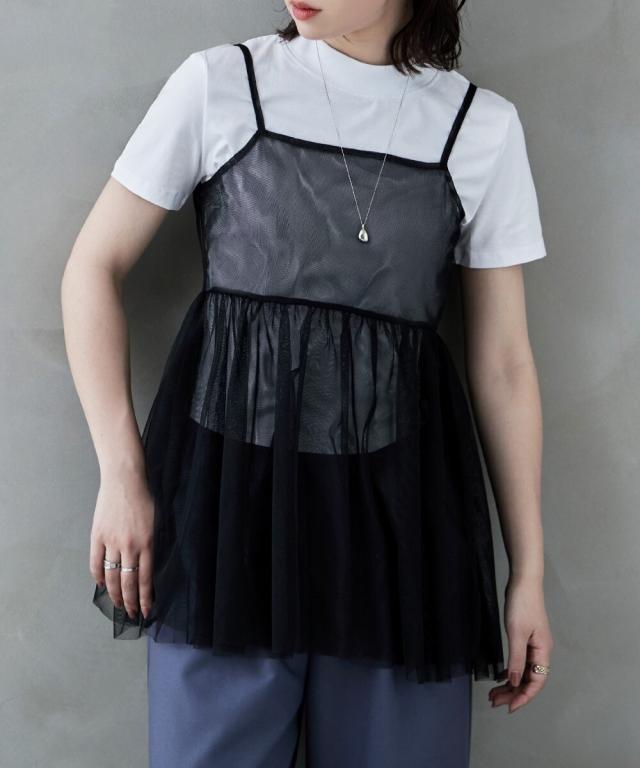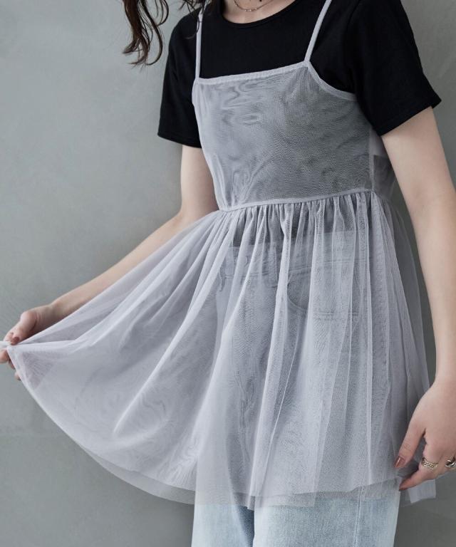 シアーデザインと細ストラップが、Tシャツやタンクトップなどに1枚重ねるだけでヘルシーで旬なレイヤードスタイルが楽しめます。