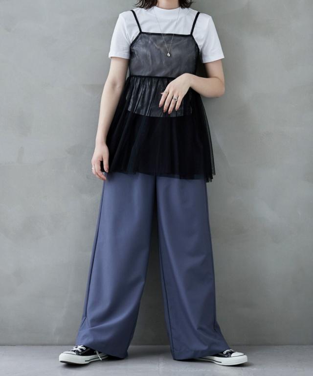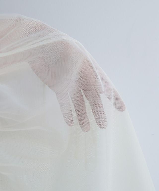 繊細なチュールを2枚重ねて優美な印象、絶妙な丈感とフレアなシルエットはスタイルアップ効果も。