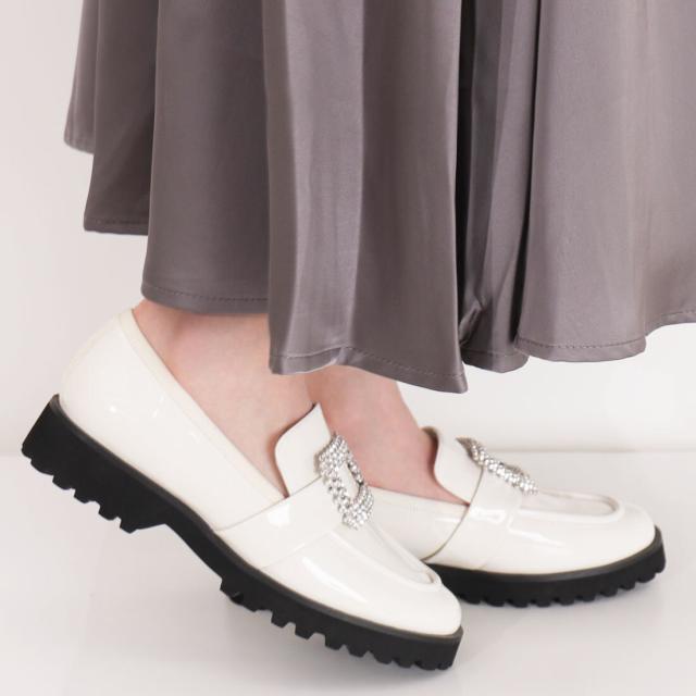 ビジューバックル厚底ローファー