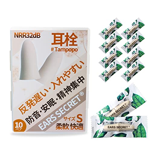 【個別包装 Sサイズ】EARS SECRET 耳栓 睡眠用 小さい みみせん 寝る時 女性用 目立たない いびき対策 聴覚過敏 勉強に集中、仕事、飛行