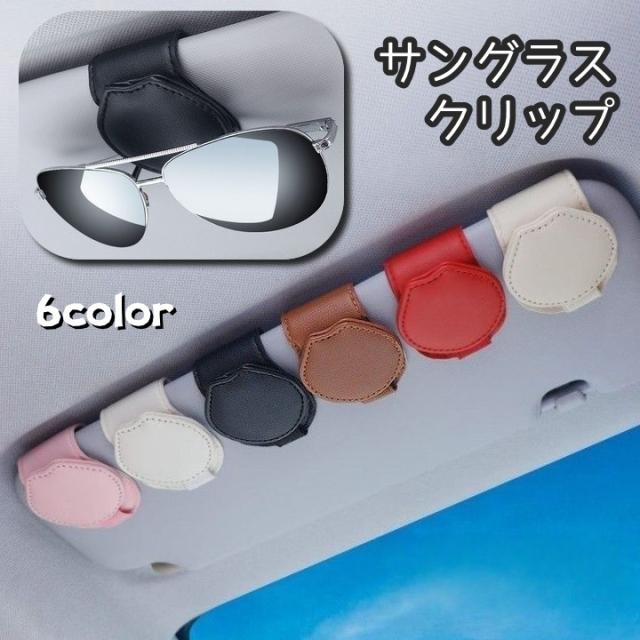 サングラスクリップ カー用品 車用 車載 サンバイザー メガネクリップ メガネホルダー カードホルダー クリップ レザー調 収納