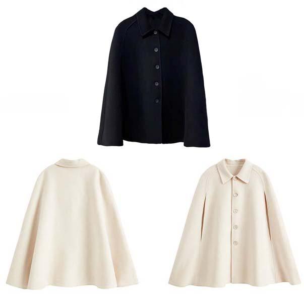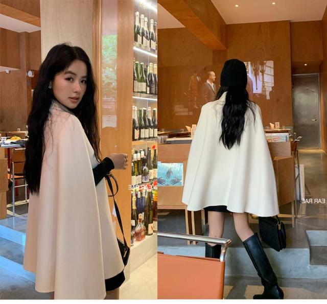 ケープコート マントコート ミディアム丈 ポンチョ コート アウター S M L 2L ゆったり アイボリー ブラック レディース 女性 韓国風 秋服 冬服 防寒着 体型カバー おしゃれ エレガント フェミニン 暖かい 20代 30代 40代 母 dd322c0zu