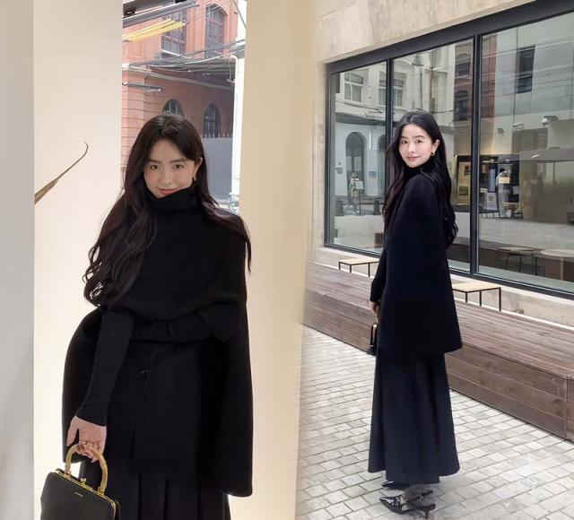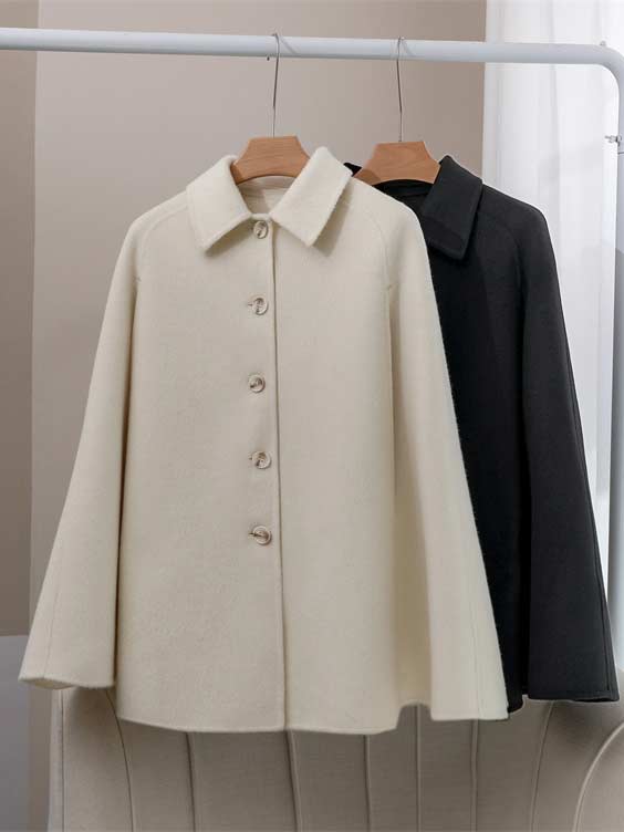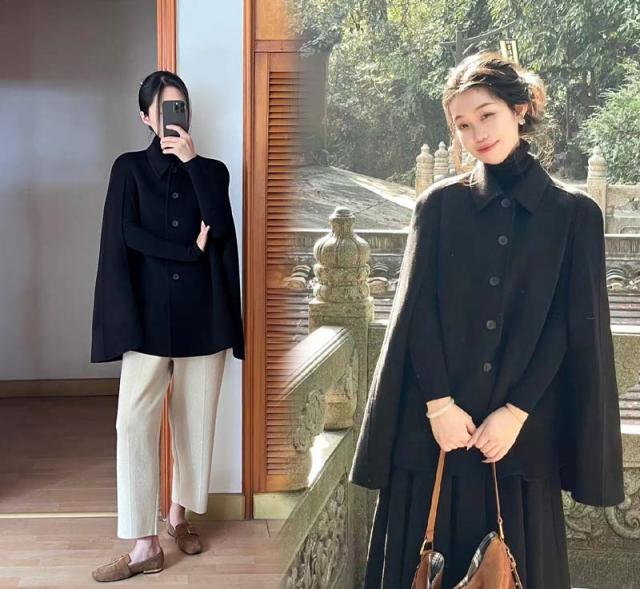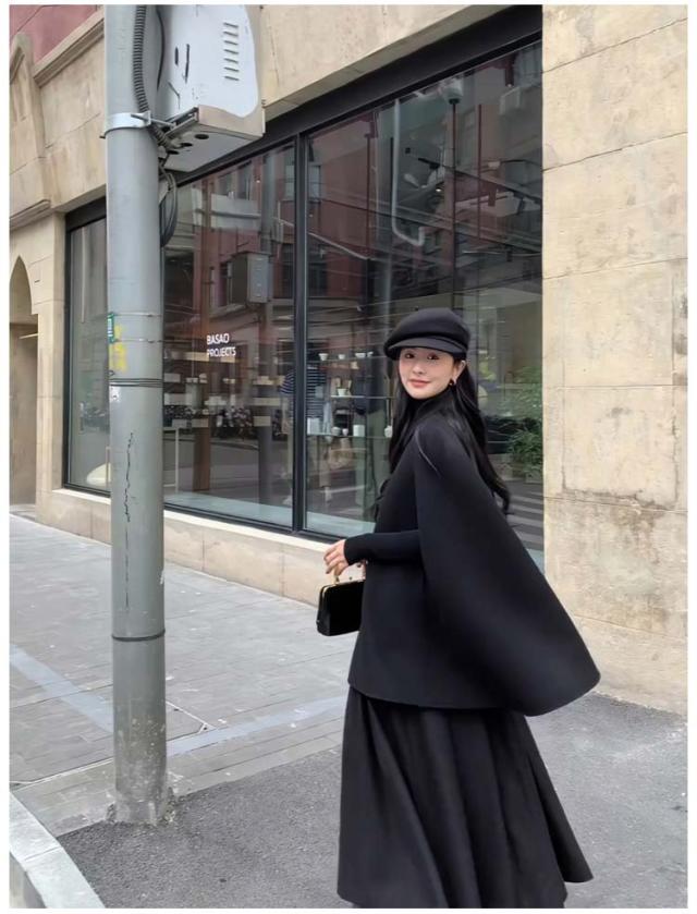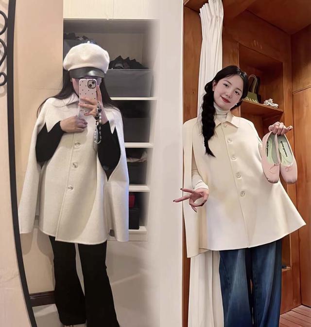 ケープコート マントコート ミディアム丈 ポンチョ コート アウター S M L 2L ゆったり アイボリー ブラック レディース 女性 韓国風 秋服 冬服 防寒着 体型カバー おしゃれ エレガント フェミニン 暖かい 20代 30代 40代 母